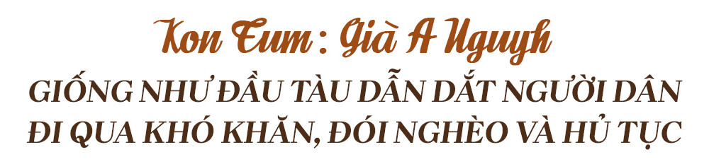 Thôn Kép Ram, xã Hòa Bình, TP. Kon Tum hiện có 157 hộ, 679 nhân khẩu; trong đó có 148 hộ đồng bào DTTS như Ba Na, Jrai, Xơ-đăng... Hơn 20 năm qua, già A Nguyh luôn được bà con tín nhiệm bầu già làng và đảm nhiệm rất nhiều nhiệm vụ như: Chi hội trưởng Hội Người cao tuổi thôn; Chi hội trưởng Hội Nông dân thôn; Trưởng ban Công tác Mặt trận thôn. Bởi, già A Nguyh giống như người đầu tàu dẫn dắt người dân đi qua khó khăn, đói nghèo và hủ tục.