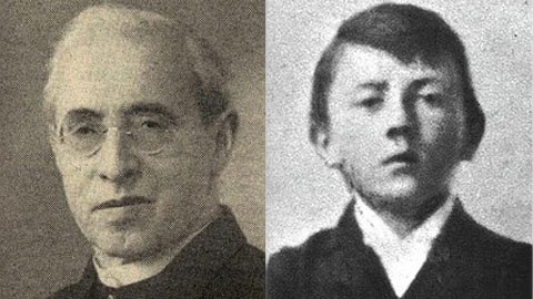 Linh mục Johann Kuehberge (trái) khẳng định đã từng cứu sống trùm phát xít Hitler khi còn nhỏ (phải) khỏi chết đuối vào năm 1894.