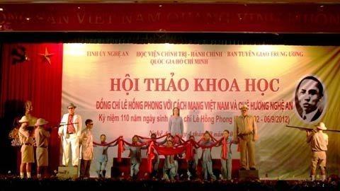 Phát biểu khai mạc, Trưởng Ban Tuyên giáo TƯ Đinh Thế Huynh nhấn mạnh, tinh thần và khí phách bất khuất của Tổng bí thư Lê Hồng Phong vốn được kế thừa, phát triển từ truyền thống lâu đời của mảnh đất xứ Nghệ địa linh nhân kiệt, nơi sinh ra những bậc hiền tài cho đất nước như Mai Hắc Đế, Phan Bội Châu, Nguyễn Ái Quốc…