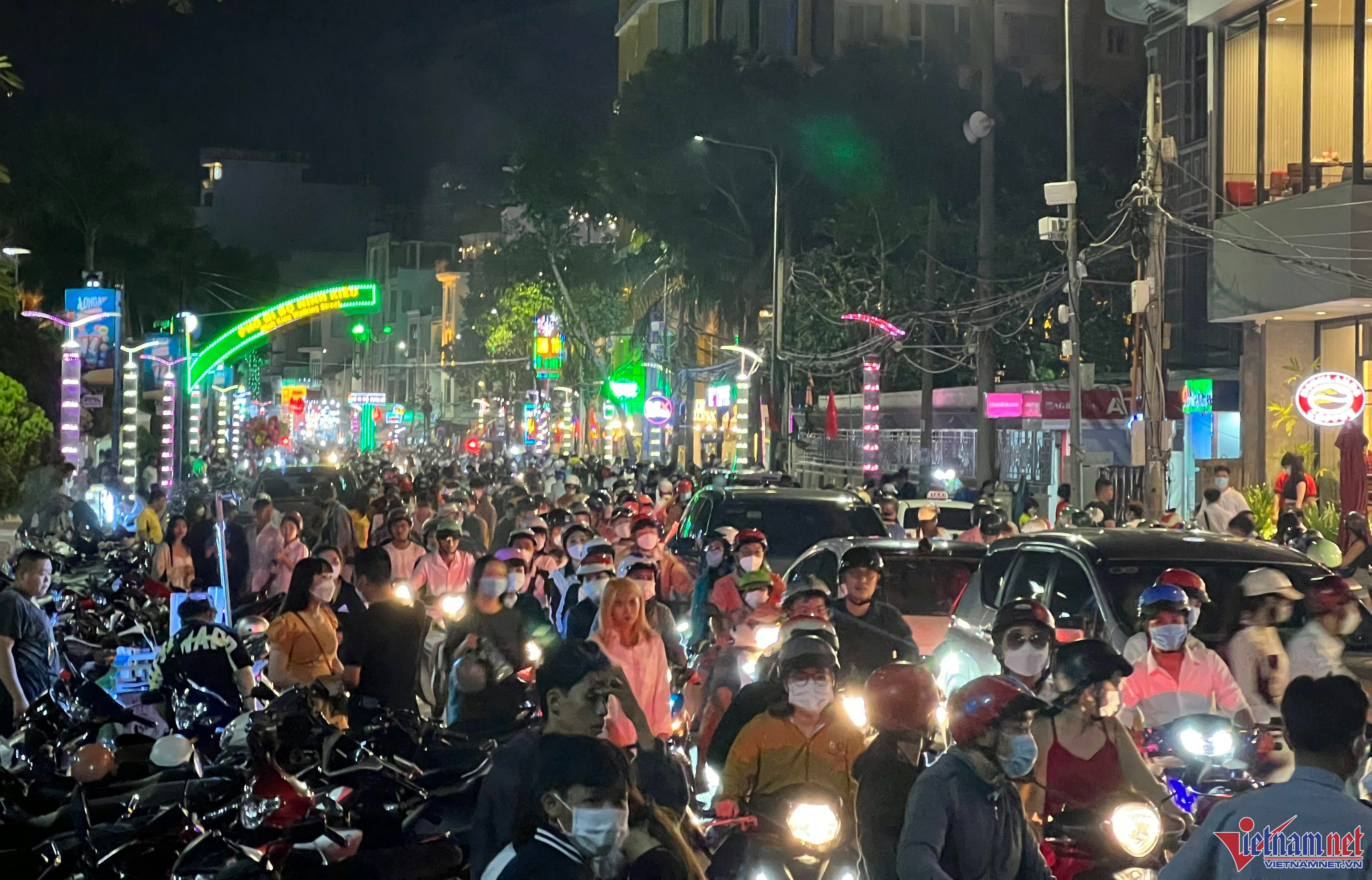 20h30, tại TP Hội An (tỉnh Quảng Nam), trời se lạnh, các tuyến phố chính như Trần Phú, Nguyễn Thái Học, cầu An Hội tập trung hàng ngàn người dân dạo phố.