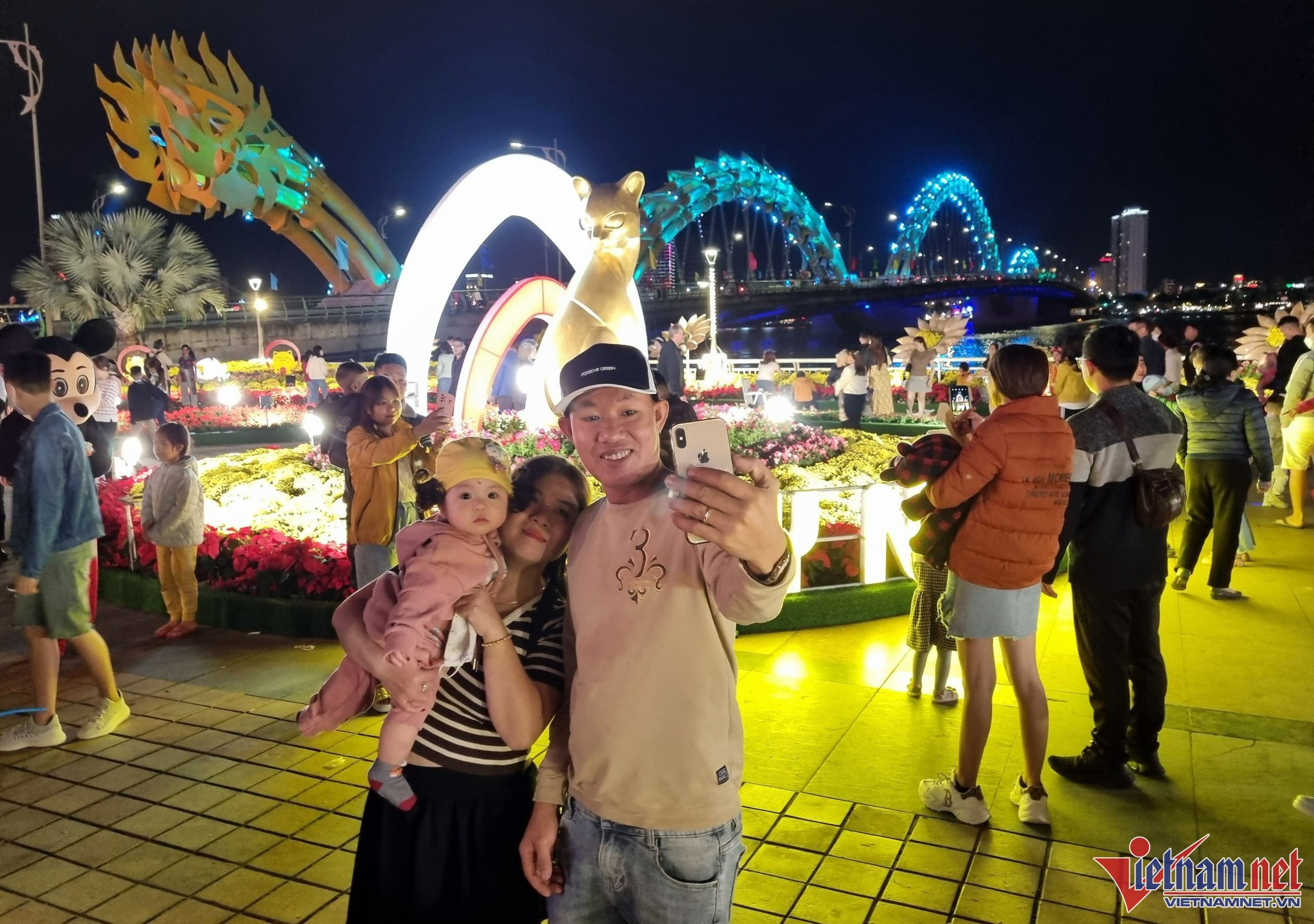 TP Đà Nẵng thời tiết mát mẻ. Rất đông người dân tập trung đến các công viên, khu vực đường hoa đón giao thừa. Tại khu vực phía Tây cầu Rồng nhiều gia đình có mặt tham quan, chụp hình bên các tiểu cảnh. Nhiều người dân tìm đến các chùa trên địa bàn thành phố thắp nhang cầu bình an trong ngày cuối năm.