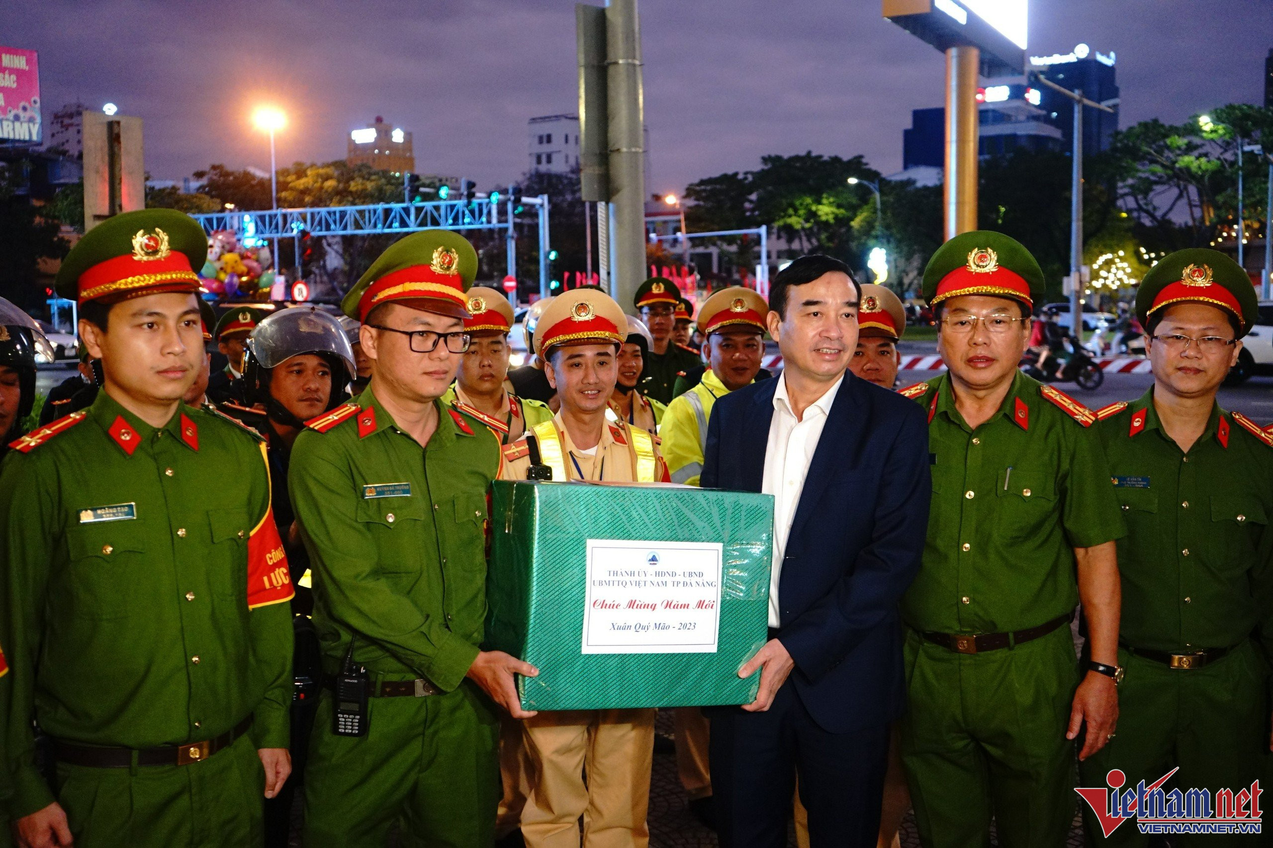 Chị Nghiêm chia sẻ: "Nhìn những người lao động còn mưu sinh trong đêm giao thừa ai cũng thương cả. Tuy chỉ là một phần quà nhỏ, nhưng hy vọng các cô chú sẽ cảm thấy ấm lòng".