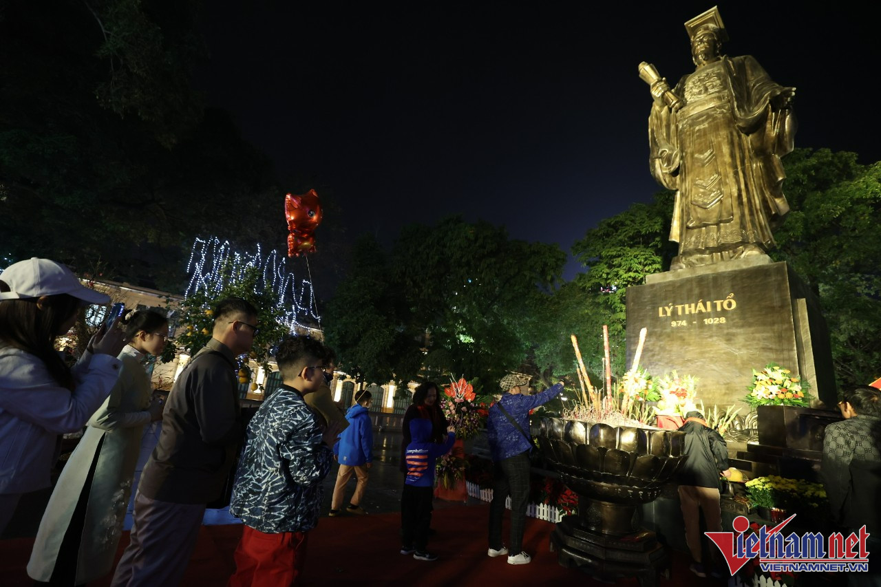 Người dân thắp hương trước tượng đài Lý Thái Tổ.