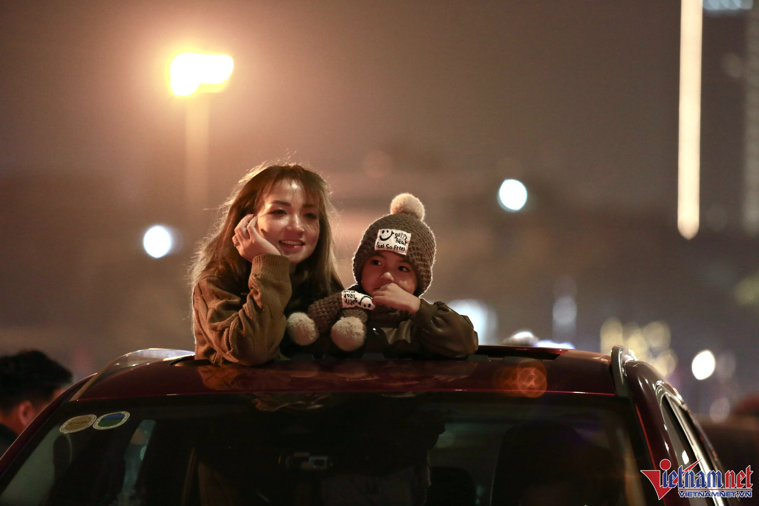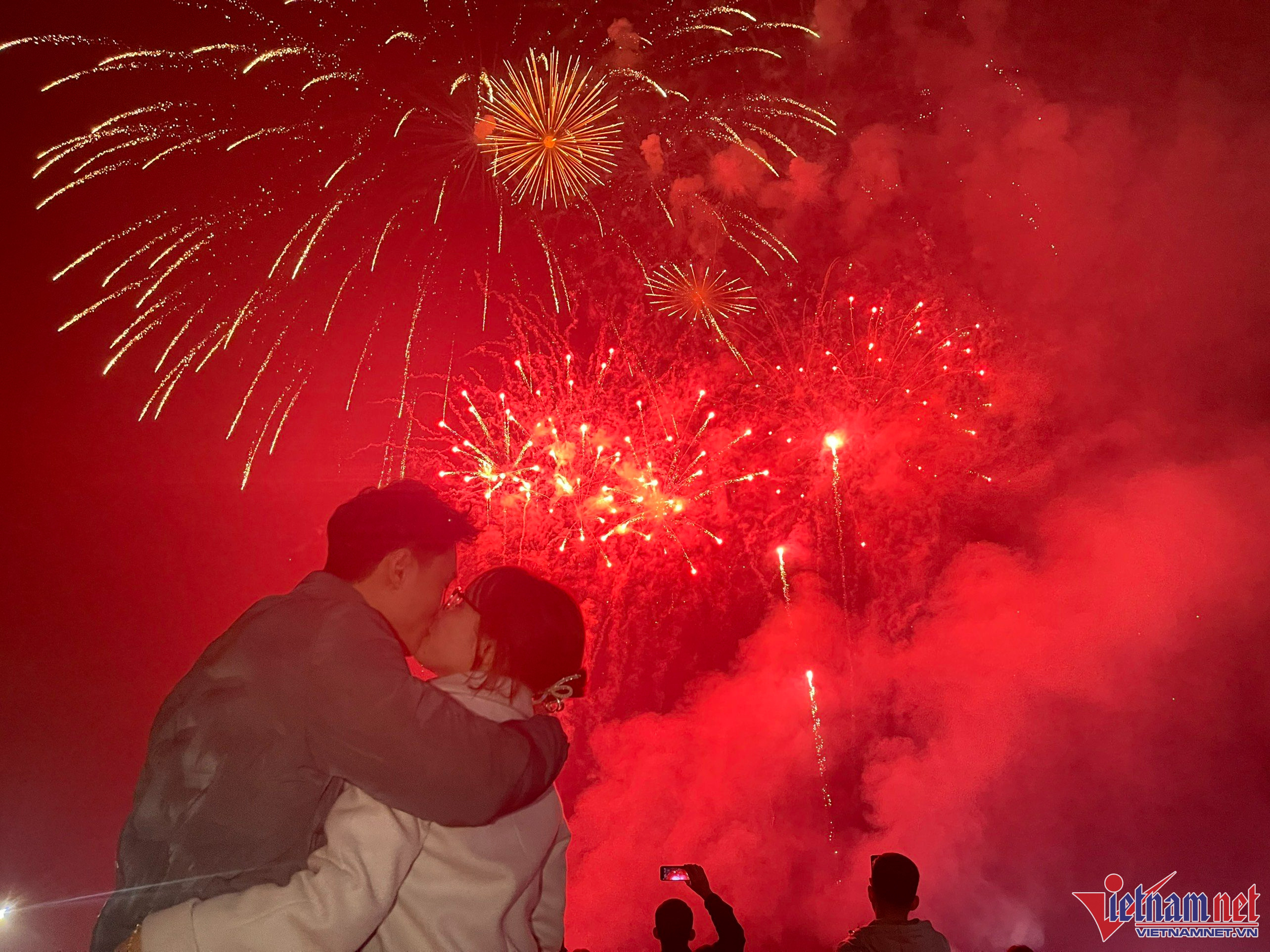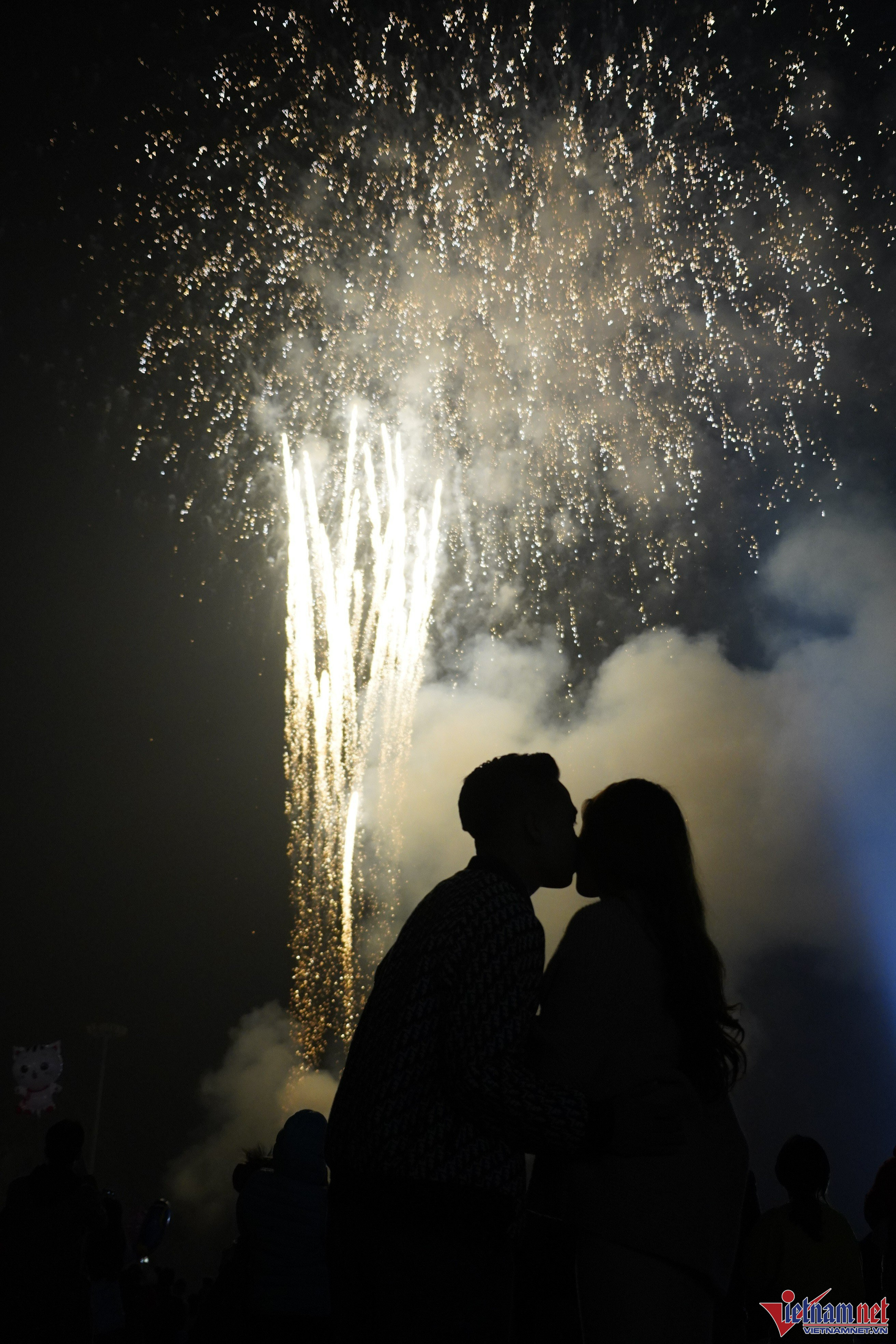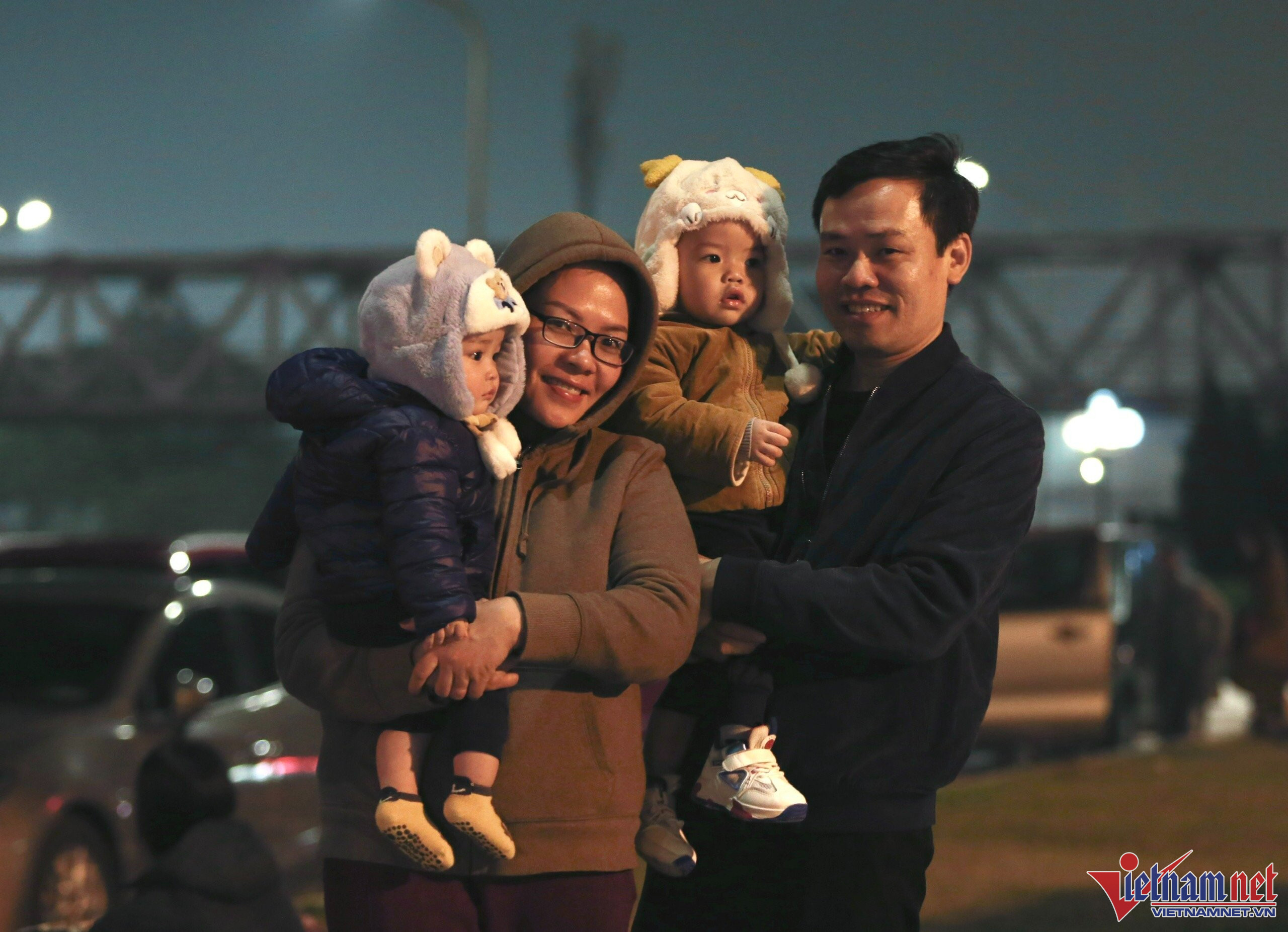 Gia đình chị Nguyễn Thúy Hồng (Phú Đô, Nam Từ Liêm, Hà Nội) chia sẻ: "Dù nhà cách điểm bắn pháo hoa không xa, lên tầng thượng của nhà cũng có thể chiêm ngưỡng. Thế nhưng, chị vẫn quyết định cùng gia đình ra tận nơi để xem bắn pháo hoa, tận hưởng không khí giao thừa.