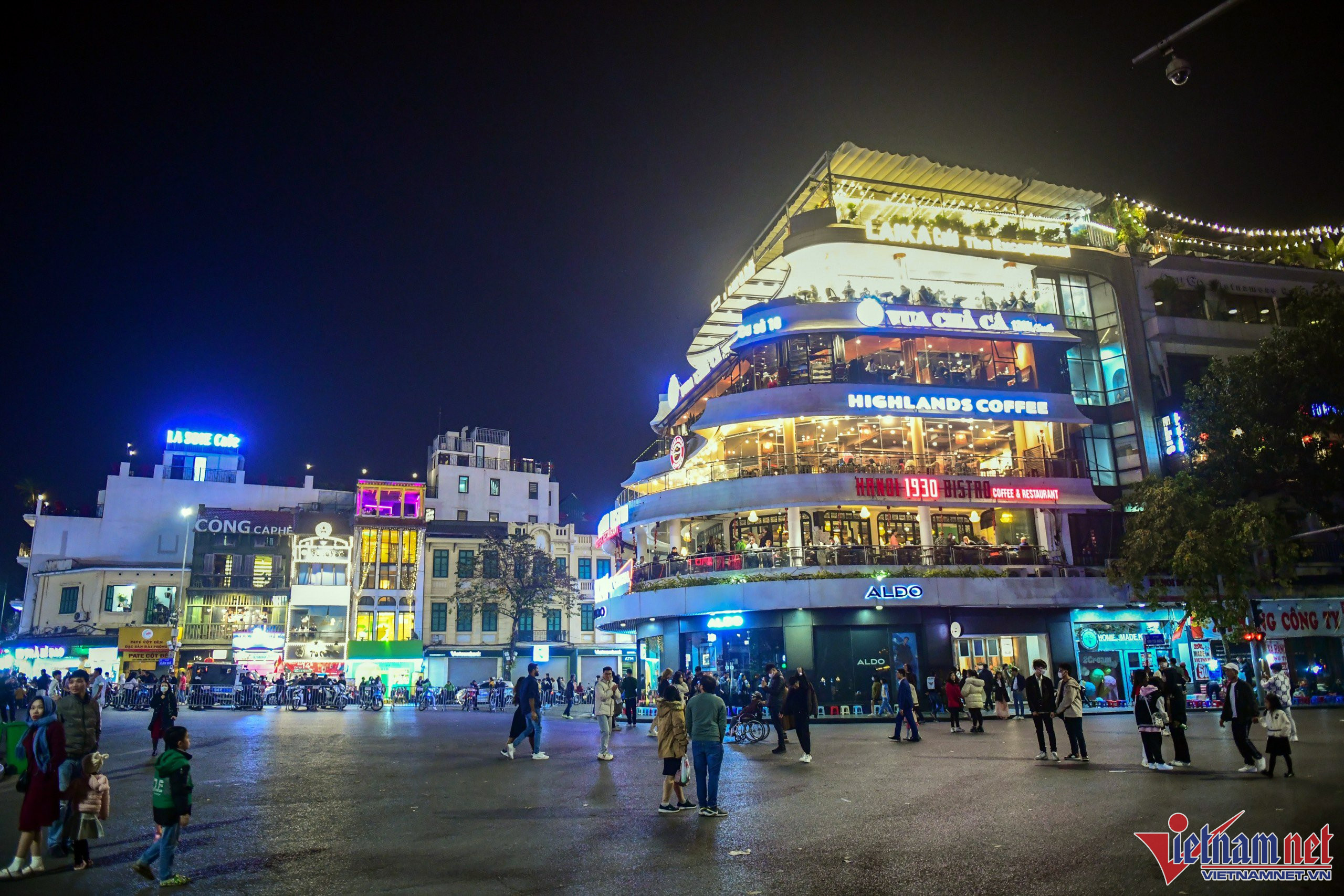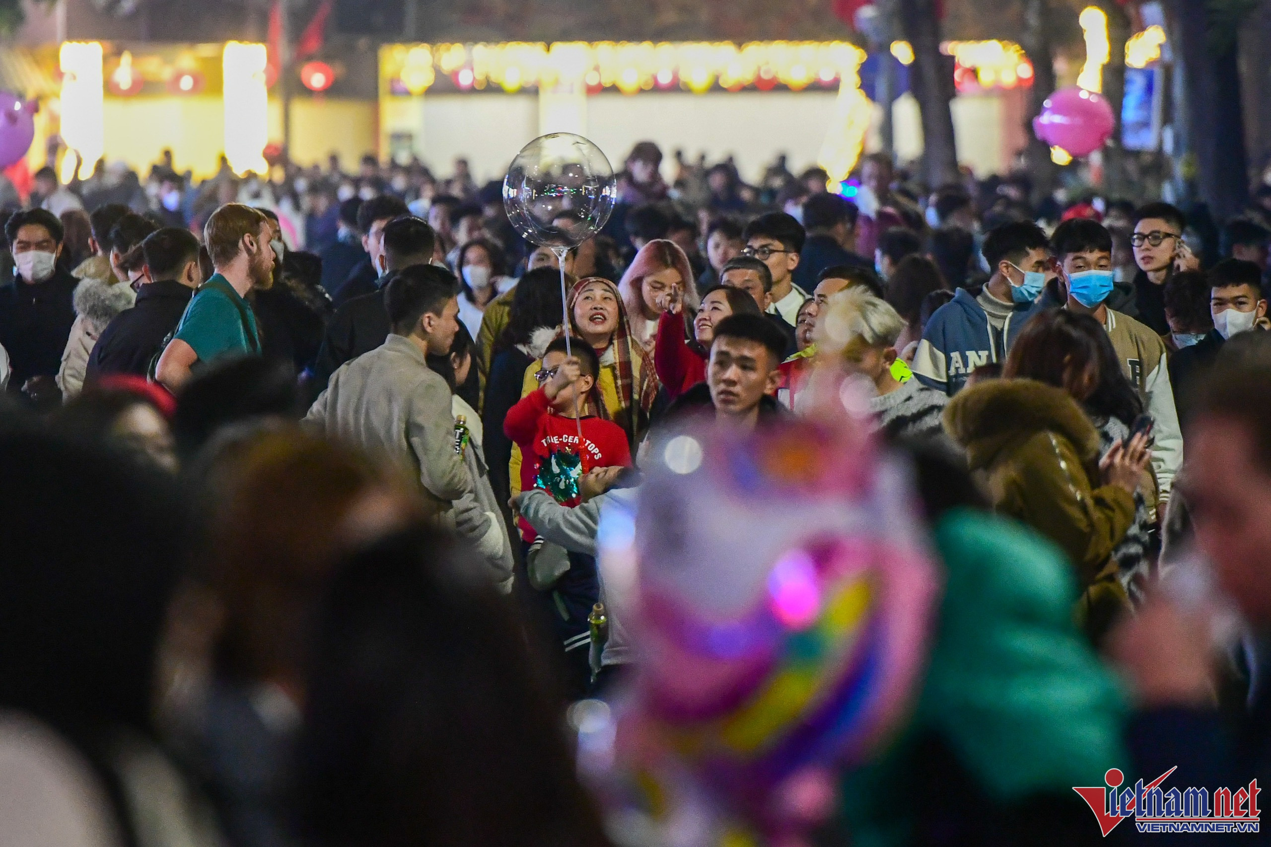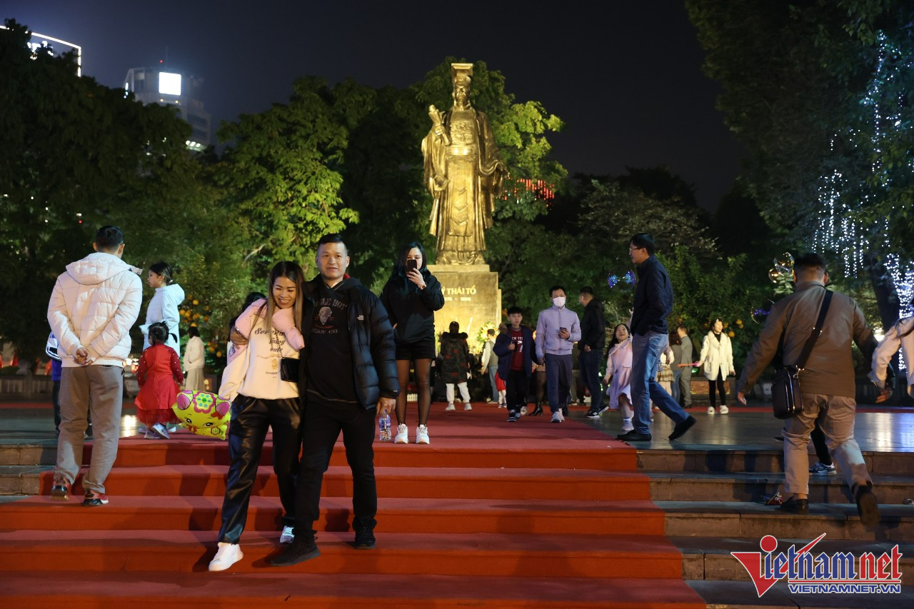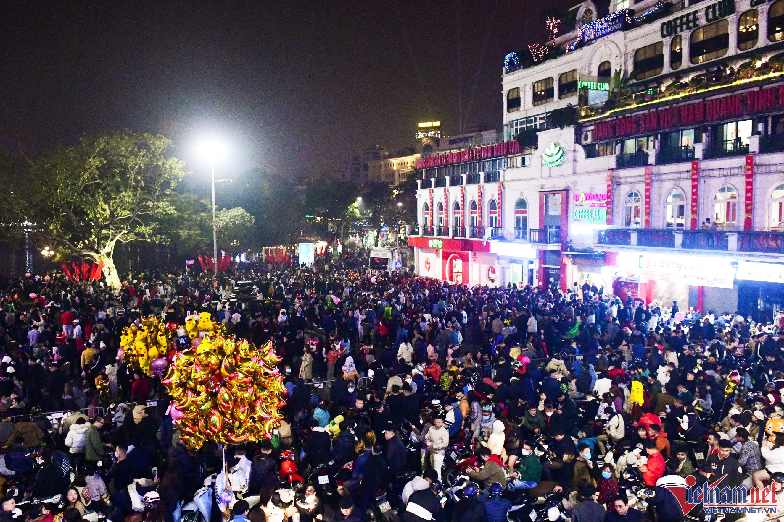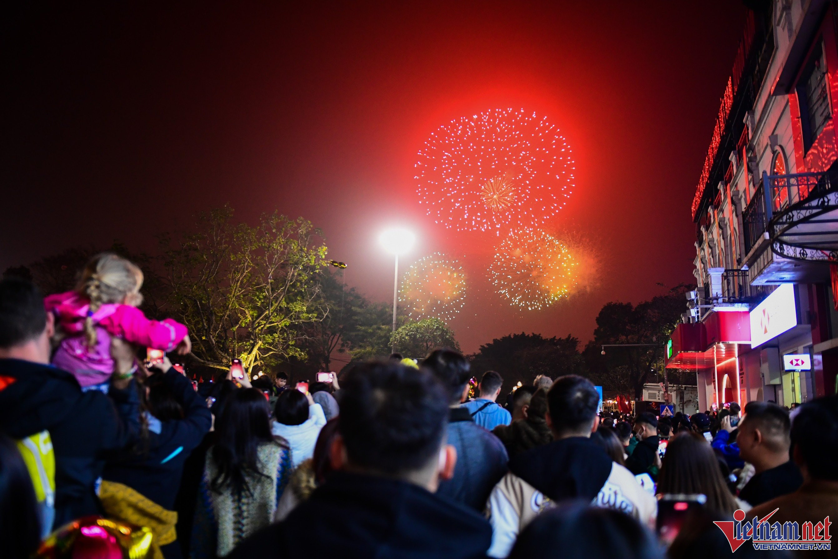 Cả trăm nghìn người dân đã đổ về những tuyến đường quanh khu vực hồ Hoàn Kiếm chờ chiêm ngưỡng màn pháo hoa tầm cao. Tuyến đường Đinh Tiên Hoàng chật cứng phương tiện.