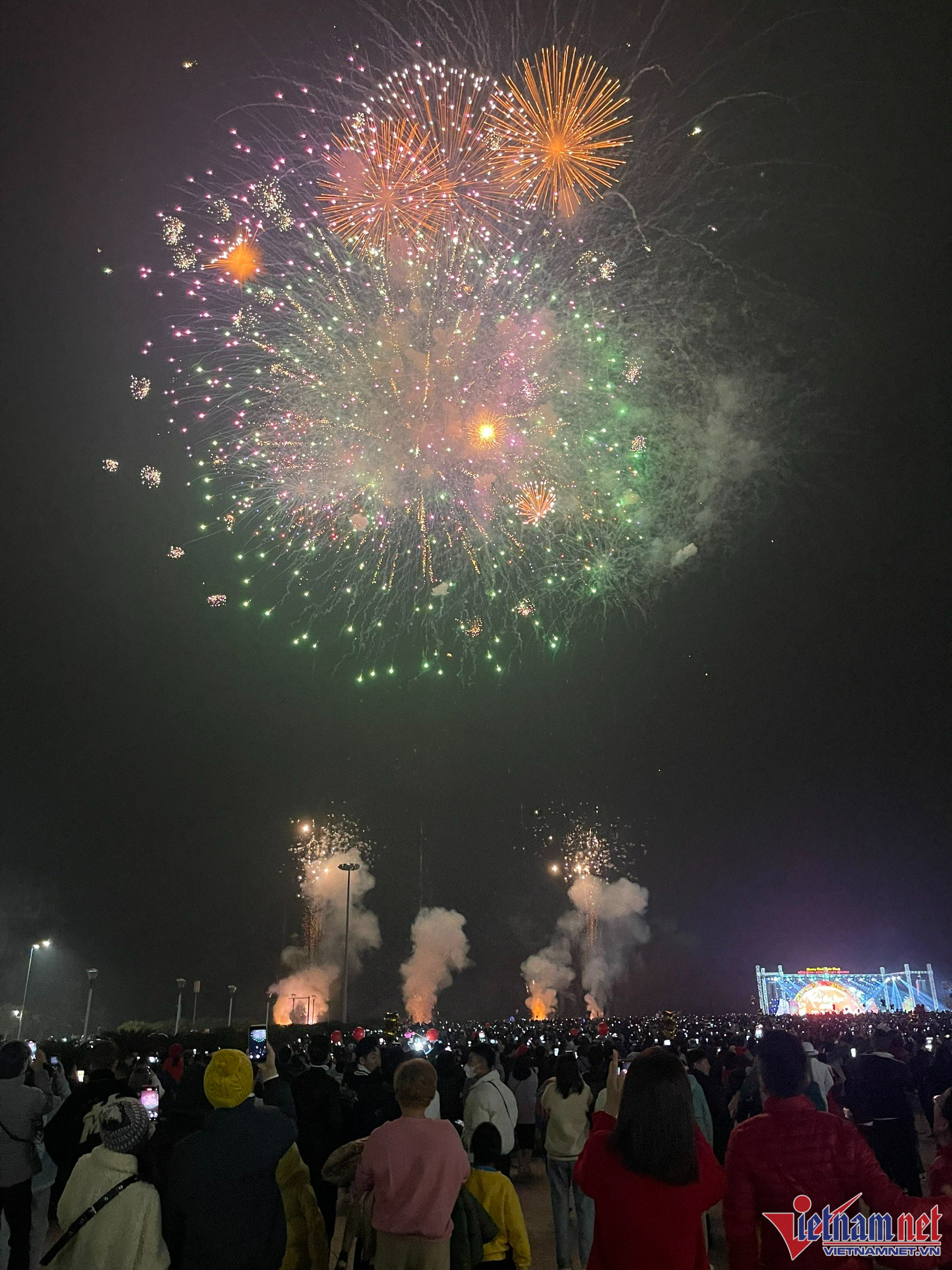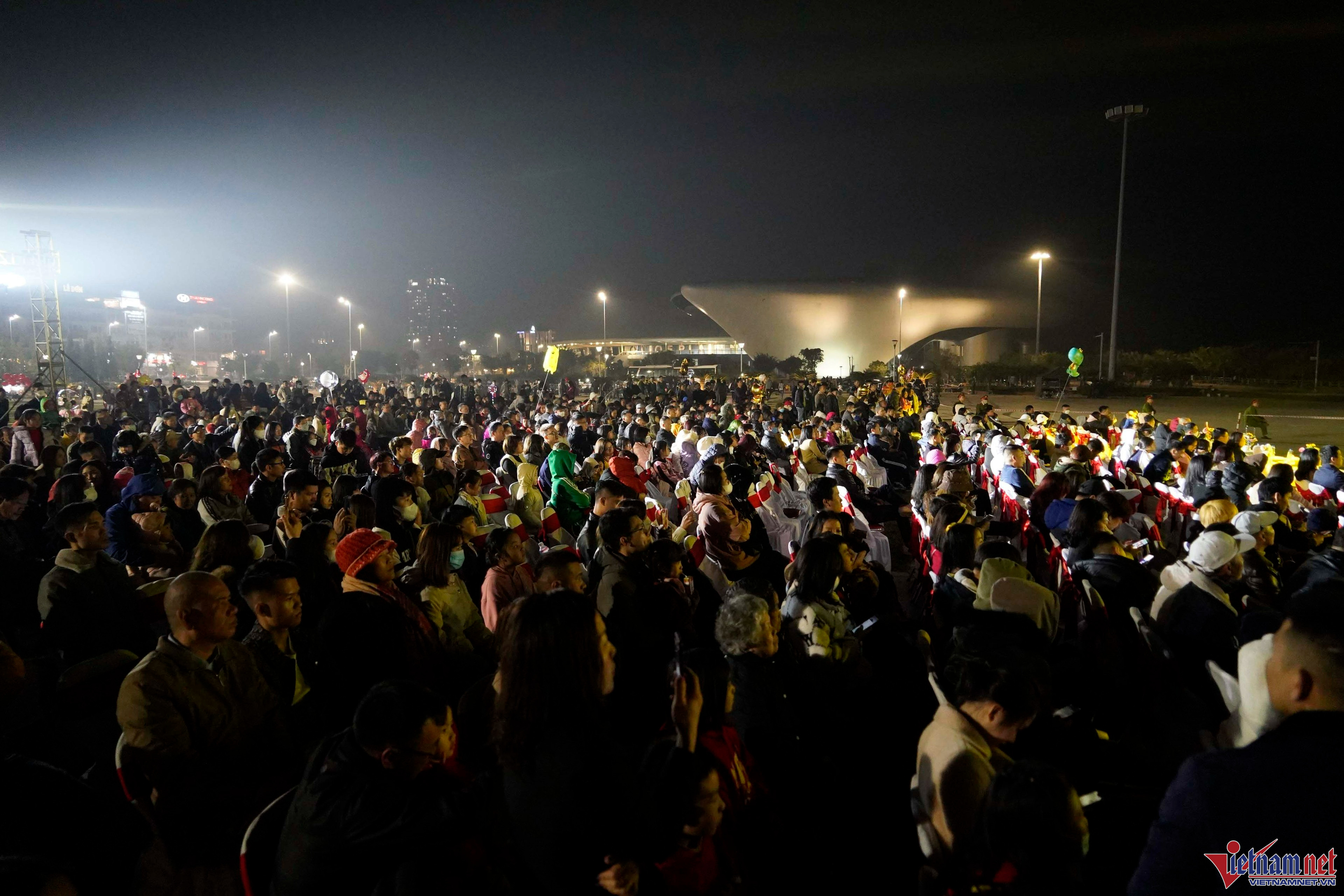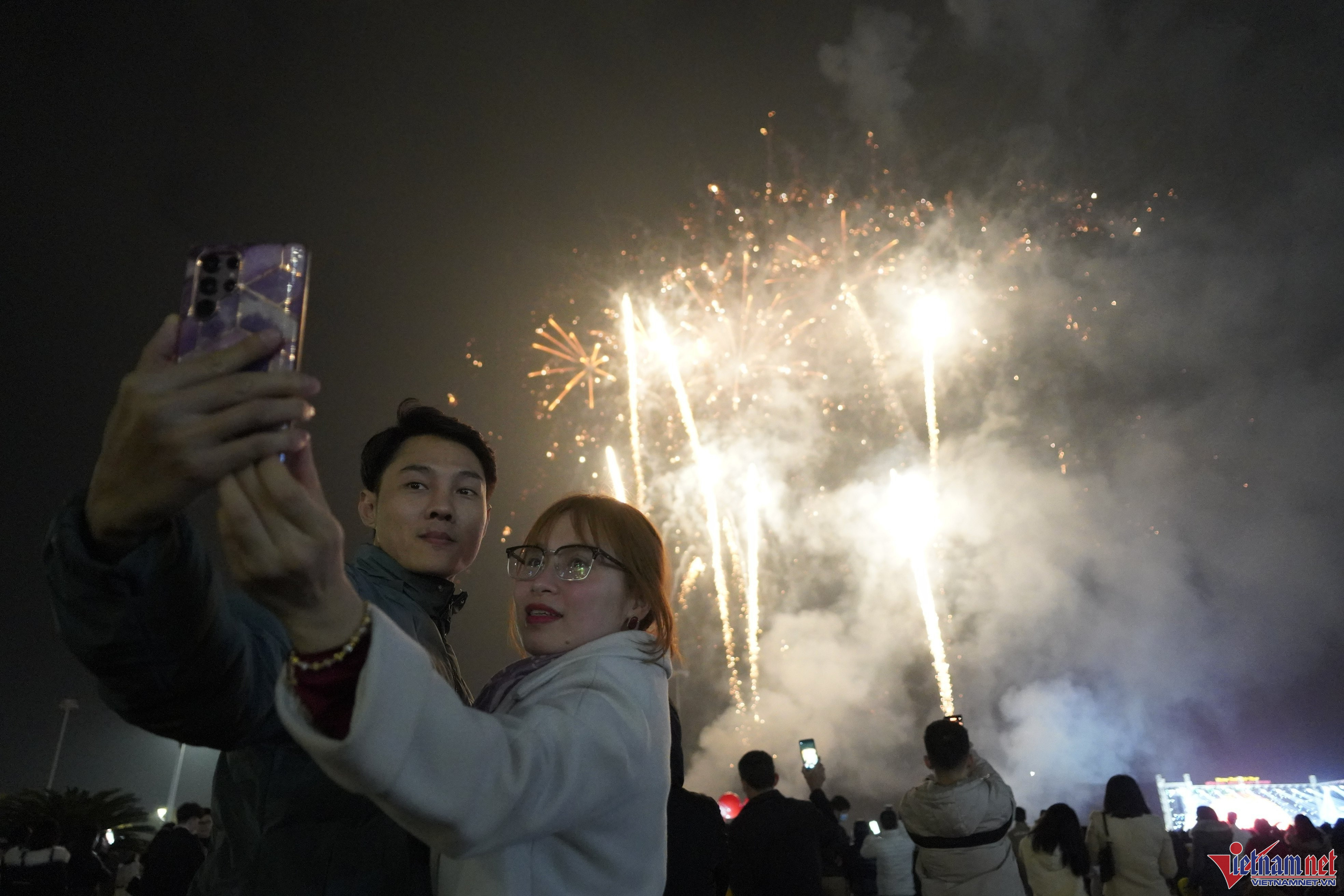 Còn hơn 1 tiếng nữa đến thời khắc giao thừa, tại quảng trường 30/10, TP Hạ Long, Quảng Ninh có rất đông người đổ về để chờ xem bắn pháo hoa.