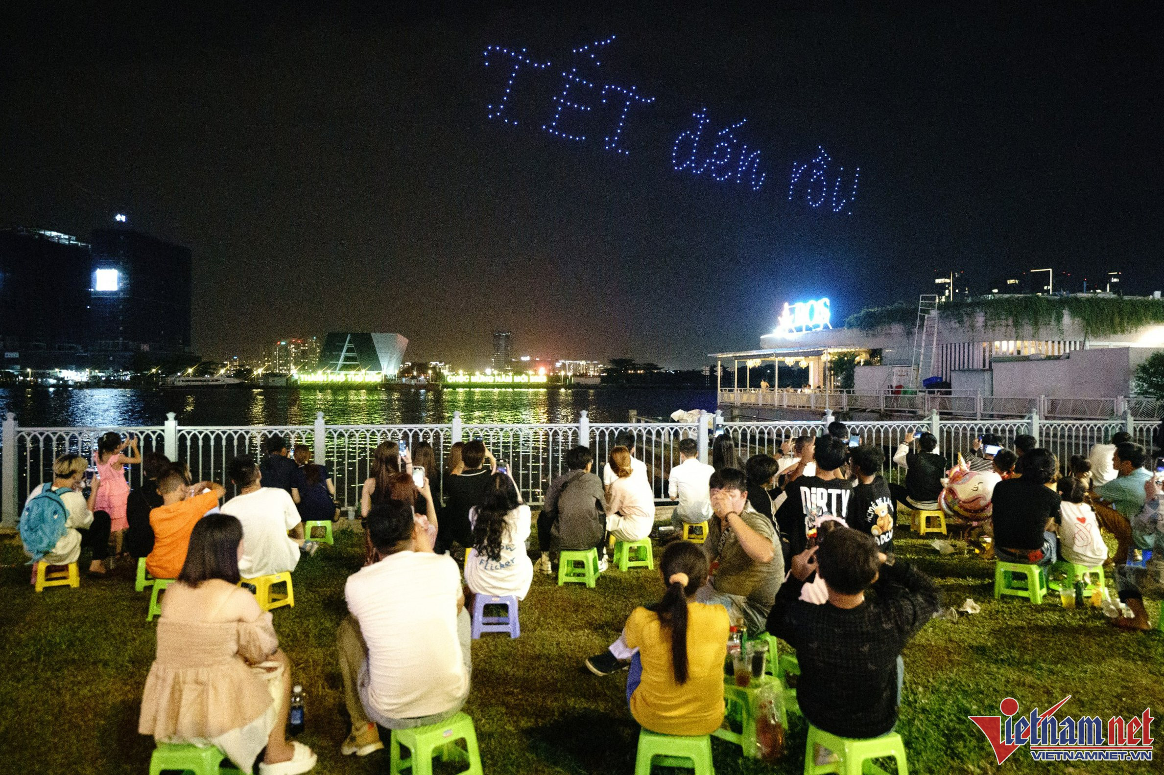 TP.HCM trình diễn Drone show trên bầu trời khu đô thị mới Thủ Thiêm (TP Thủ Đức). Số lượng flycam hơn 200 chiếc đồng loạt bay trên trời, tạo hiệu ứng ánh sáng với nội dung đón chào năm mới. Người dân tỏ ra ngạc nhiên vì đây là lần đầu tiên nhìn thấy nhiều flycam bay trên bầu trời như vậy.