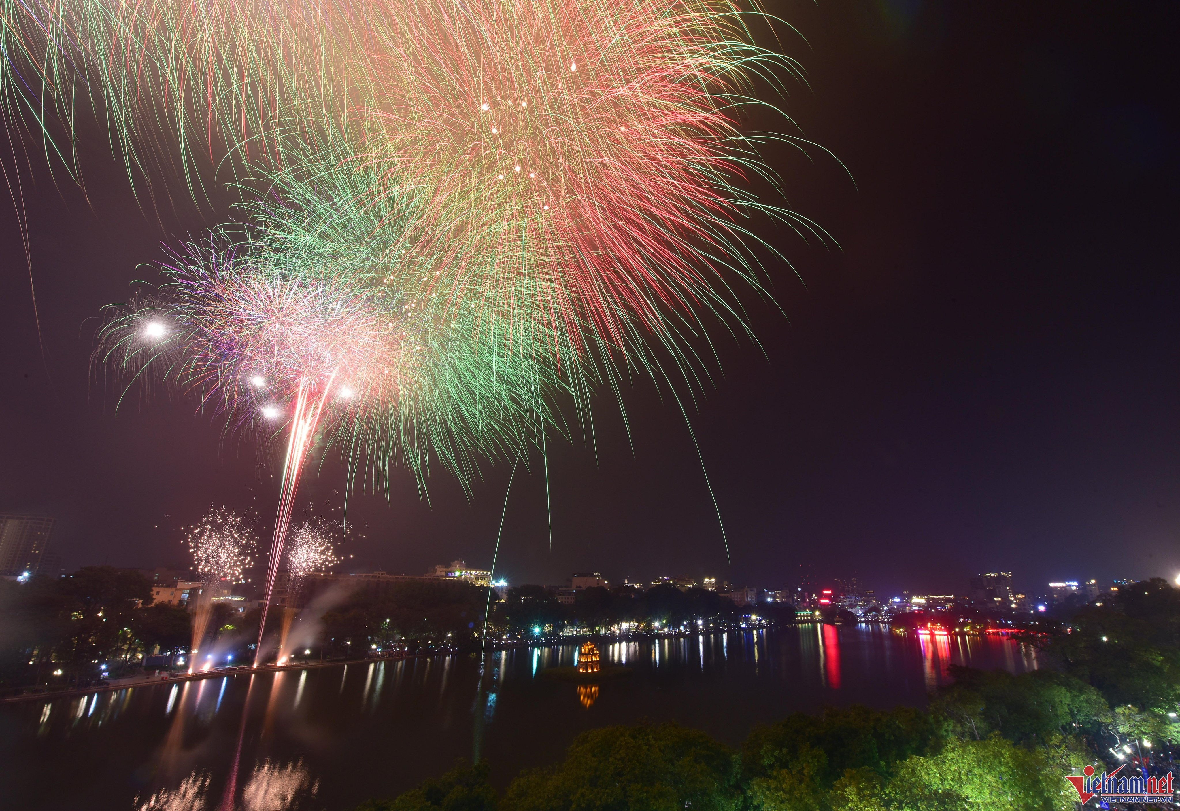 Mãn nhãn với màn pháo hoa tầm cao chào năm mới ở hồ Gươm, Hà Nội.