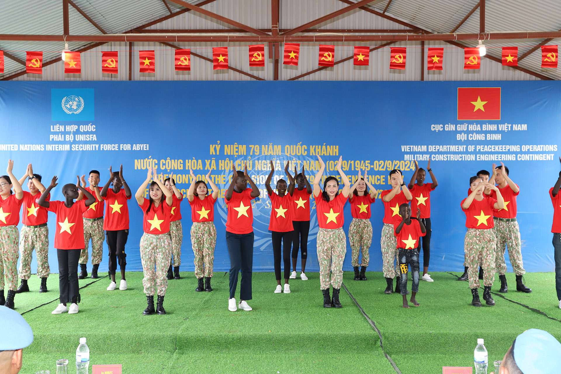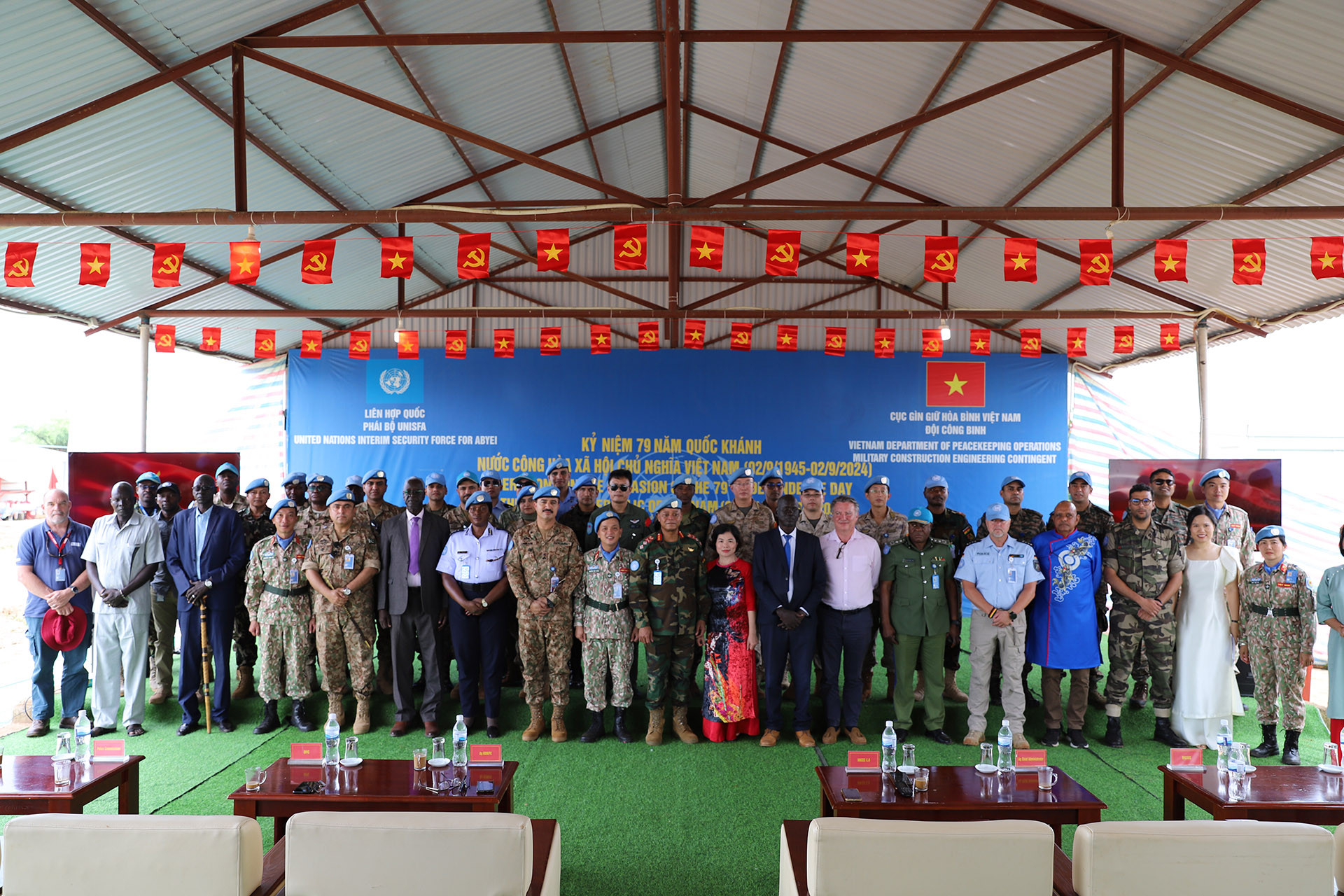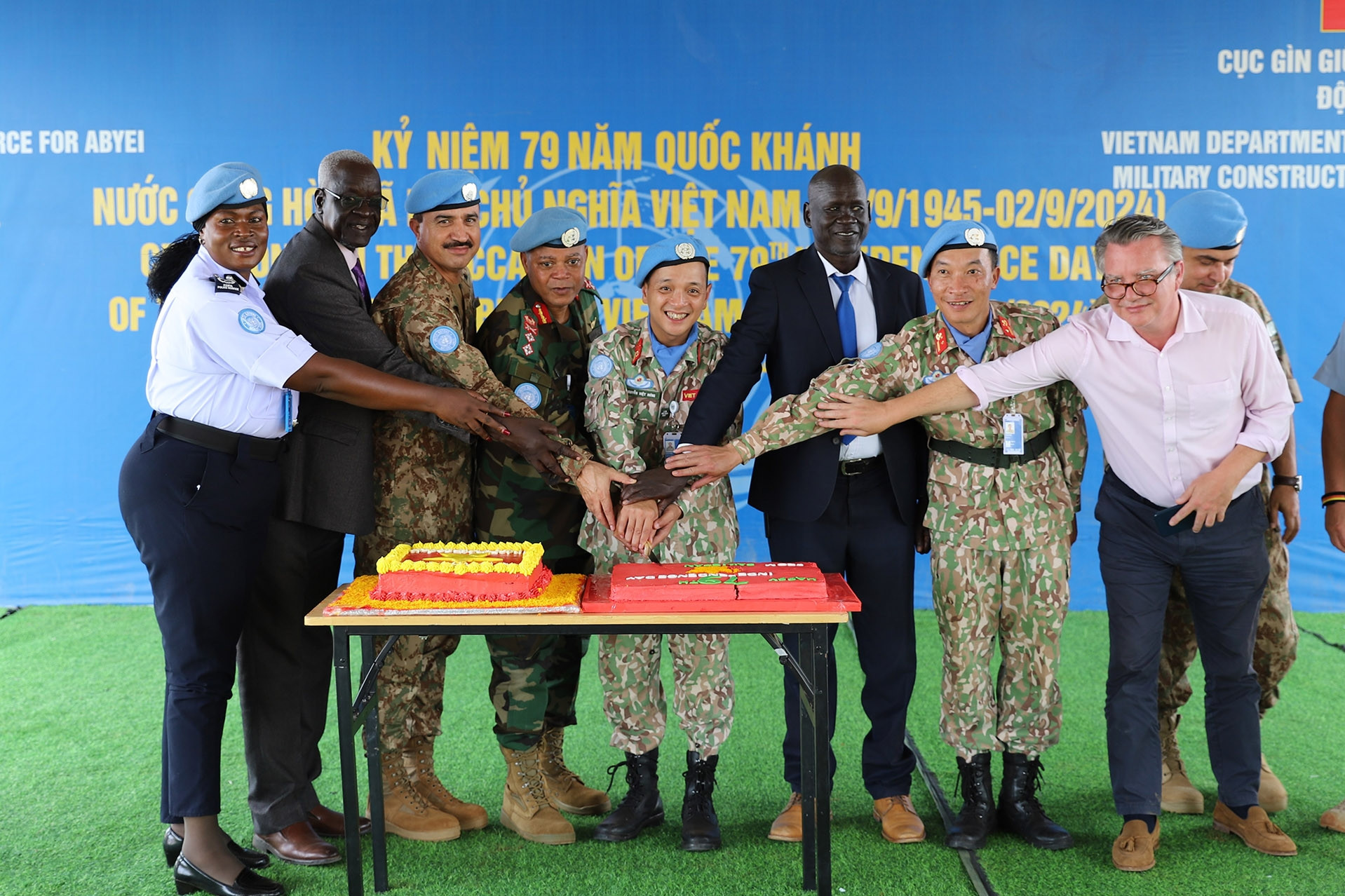 Ngày 2/9, Đội Công binh Việt Nam làm nhiệm vụ gìn giữ hòa bình Liên Hợp Quốc (GGHB LHQ) ở Phái bộ Abyei (UNISFA) đã tổ chức lễ kỷ niệm Quốc khánh tại căn cứ Highway.