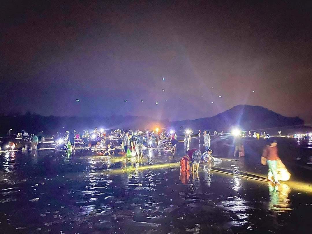Hàng trăm người đổ xô vớt ngao trong đêm.