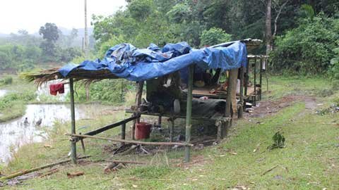 | Lều trại tạm của người dân dười chân núi Tà Ba. |