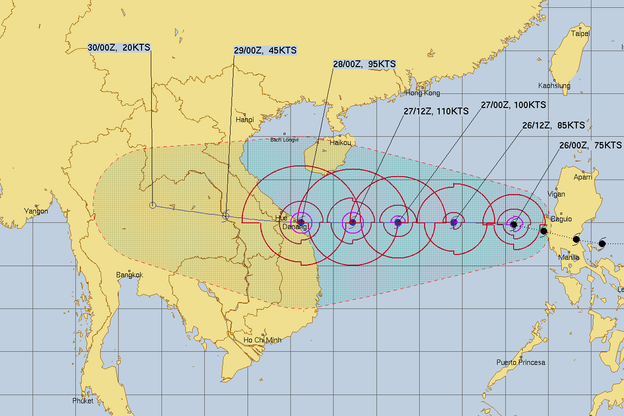 Trong 3 tiếng qua, cấu trúc cơn bão này đã ổn định hơn, với xu hướng mạnh hơn so với sáng sớm nay (khi càn quét qua Philippines). Các mô hình, dự báo quốc tế 80-90% đều đưa ra nhận định rất mạnh, khi tác động đến đất liền có thể đạt cấp 12.