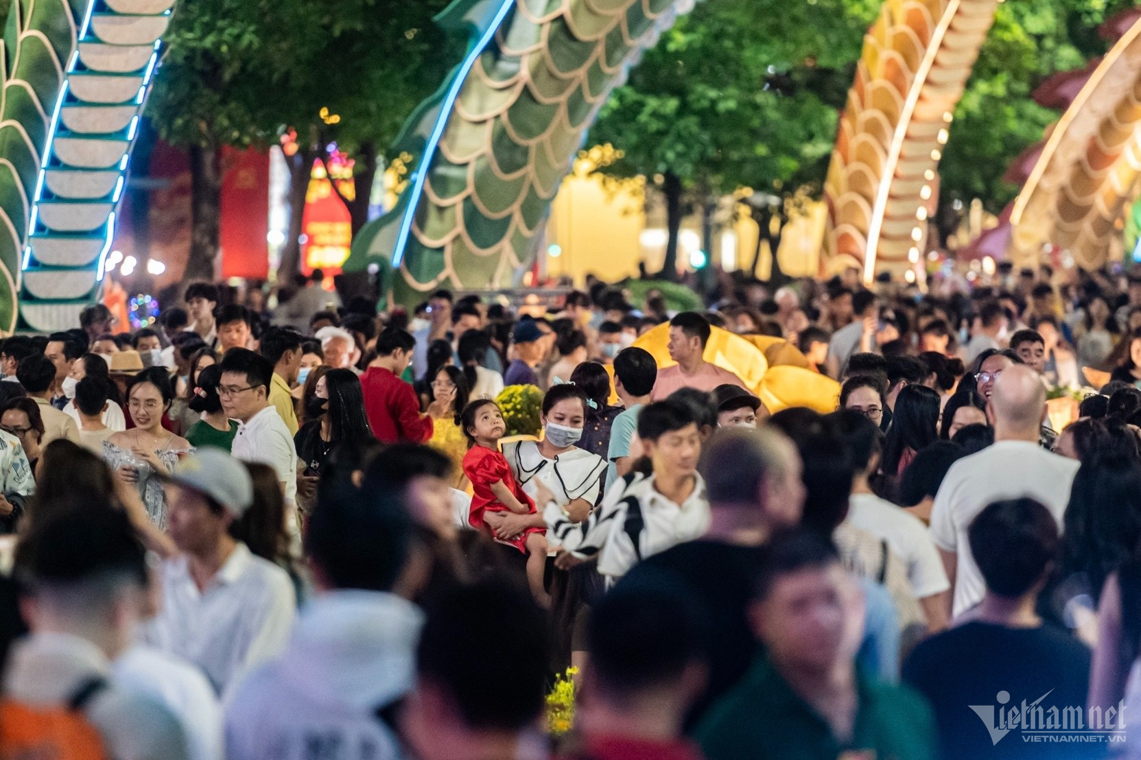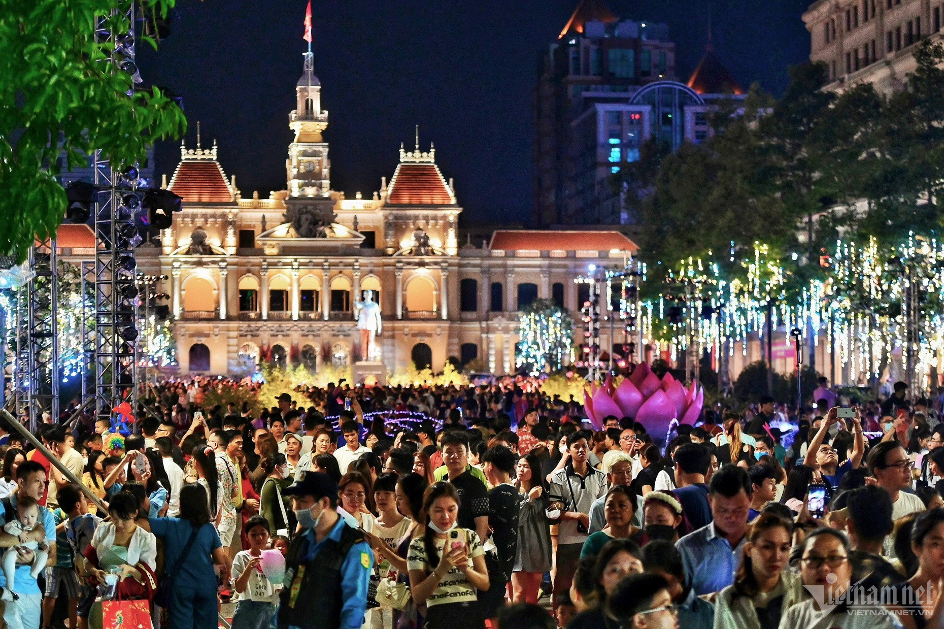 Người dân ùn ùn đổ vào trung tâm TP.HCM vui chơi, chờ đón năm mới Giáp Thìn khiến nhiều tuyến đường ùn tắc, các địa điểm vui chơi nổi tiếng quá tải.