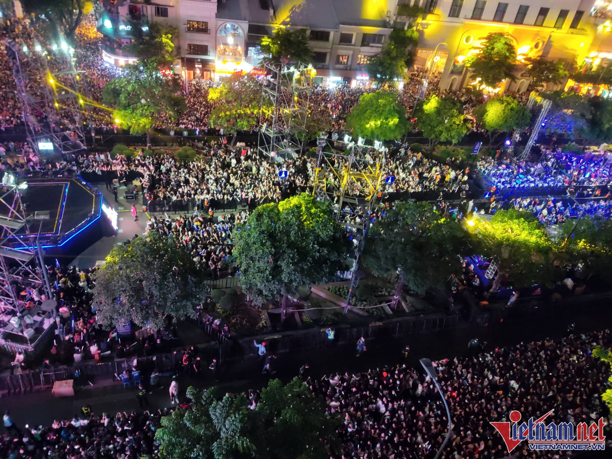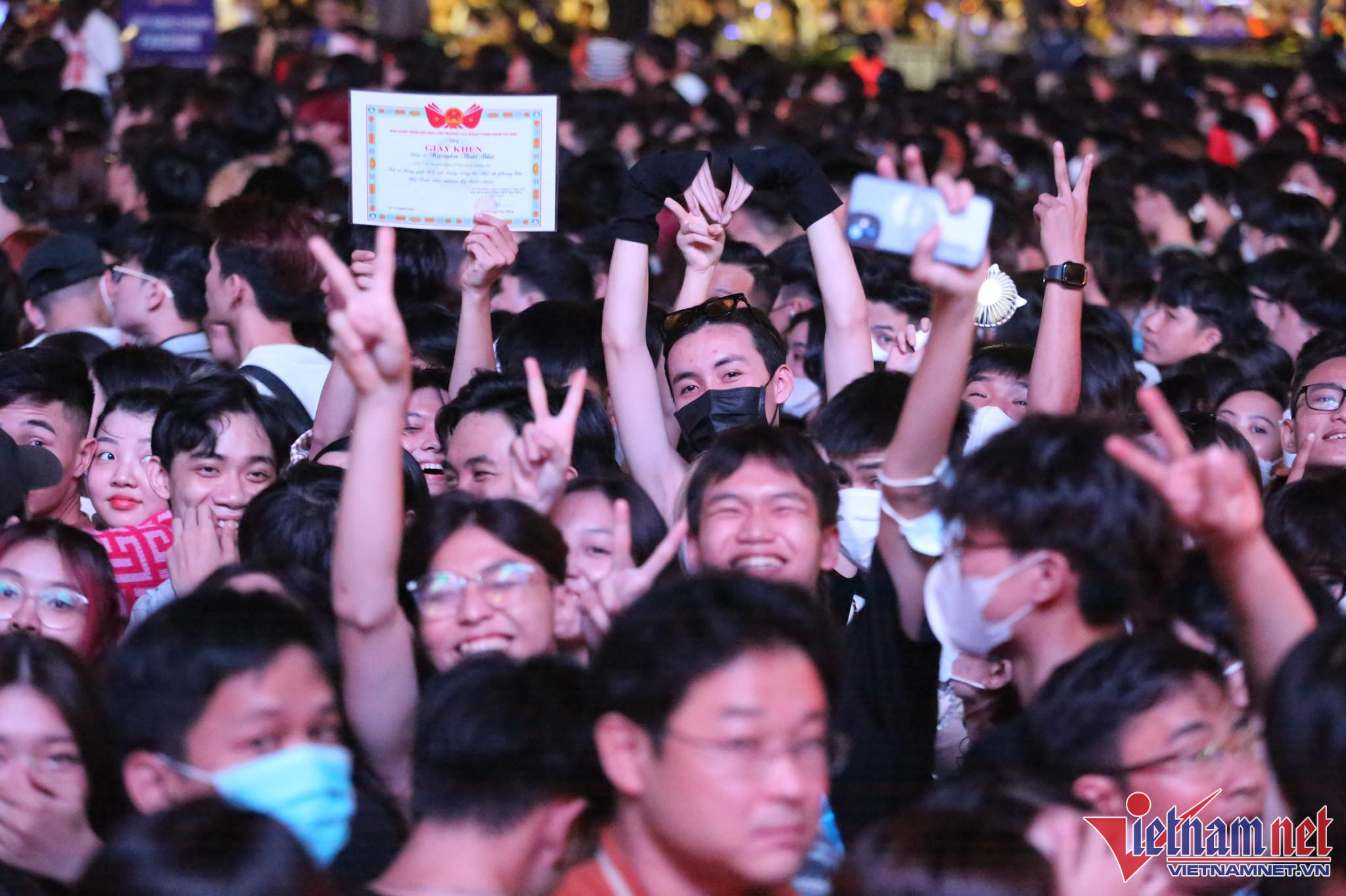 Các bạn trẻ vây kín khán đài, nơi diễn ra chương trình nghệ thuật chào đón năm mới 2023