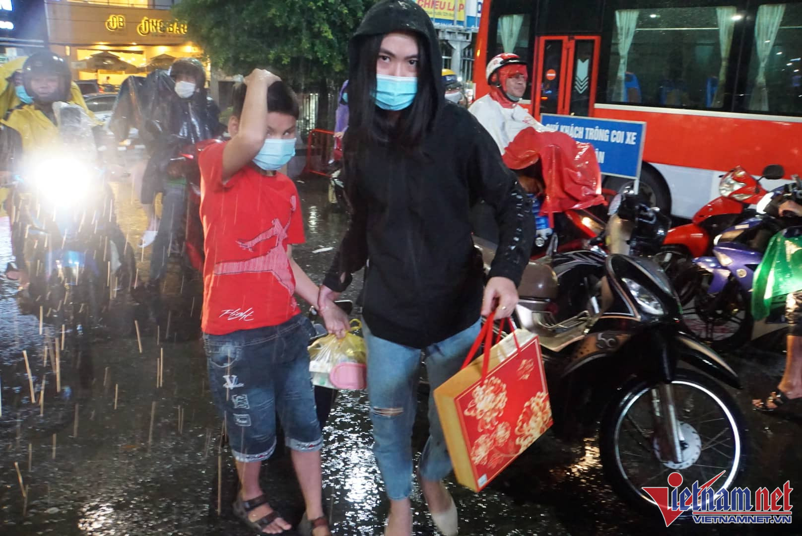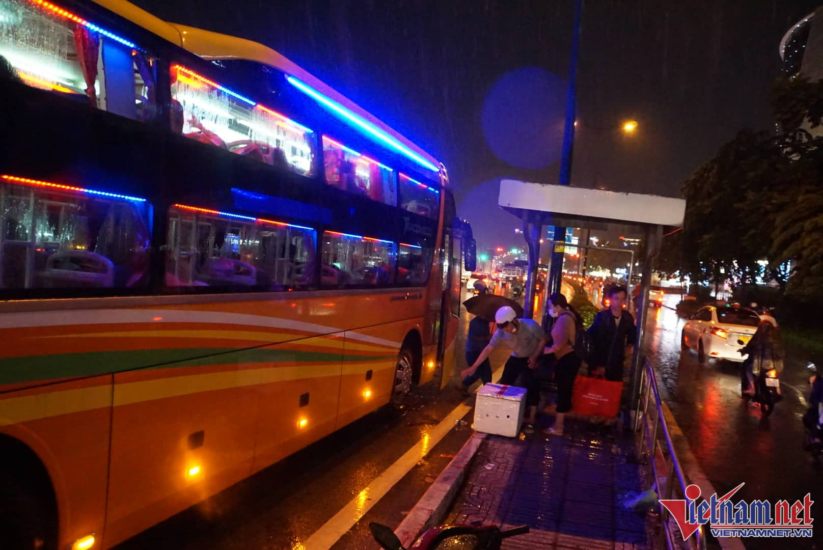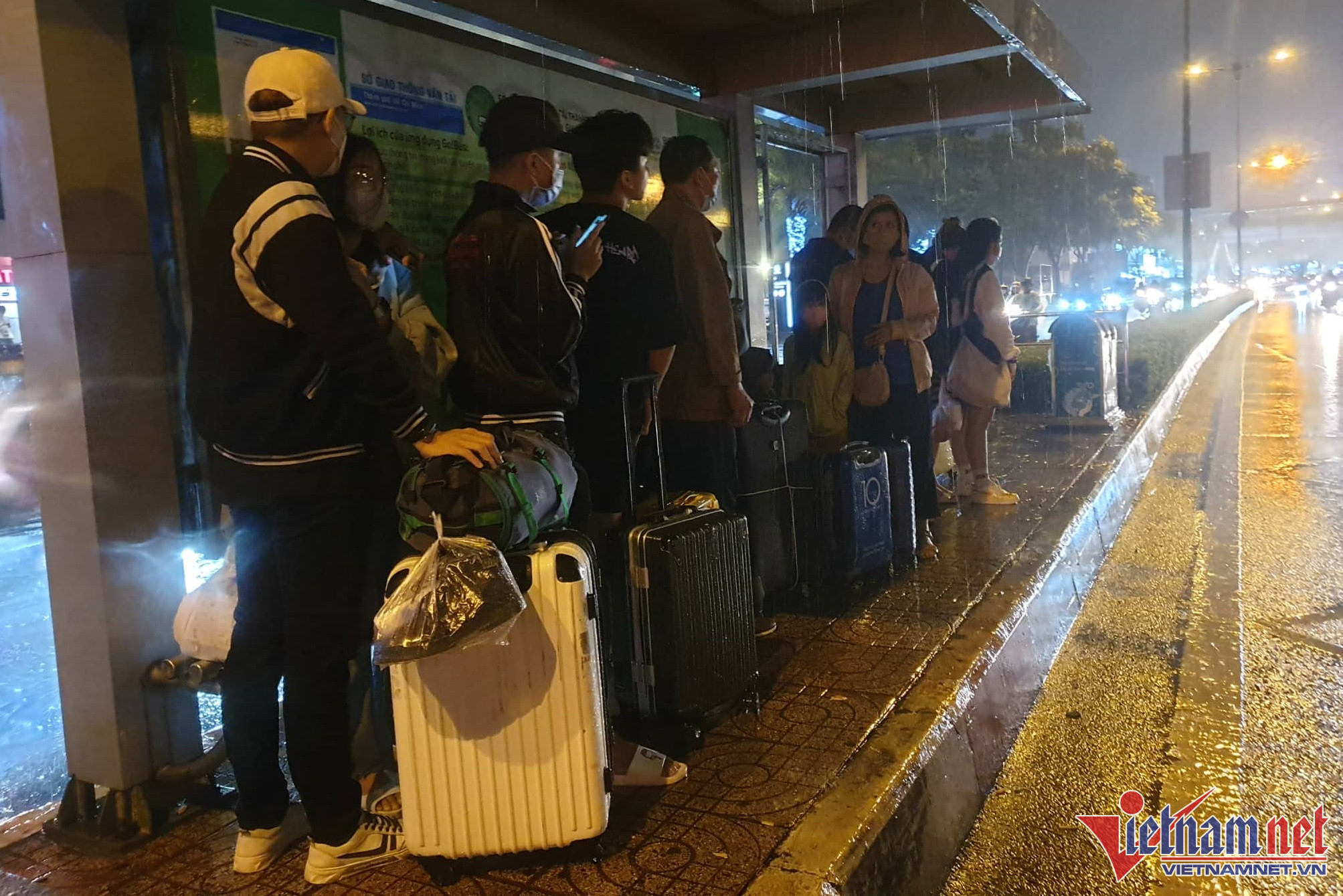 Tối 31/8, mưa lớn khắp nơi ở TP.HCM khiến người dân phải 'đội mưa' tìm đến bến xe, sân bay để về quê trước kỳ nghỉ lễ 2/9.