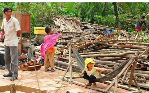 | Hàng loạt hộ dân ở Thạnh Trị và Phước Long màng trời chiếu đất sau cơn lốc. |
