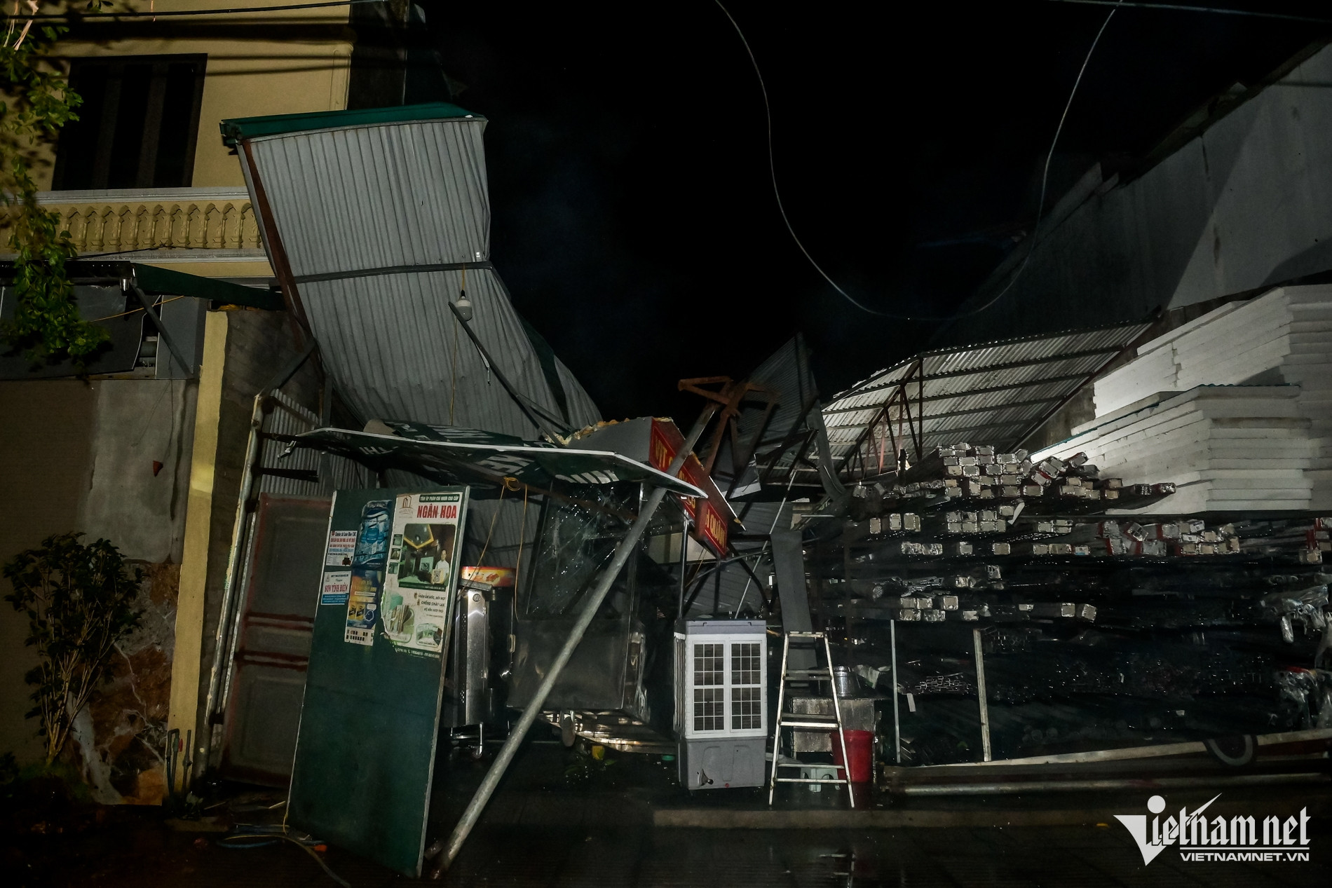 Ngay gần đó, một quán phở bị đổ sập hoàn toàn.