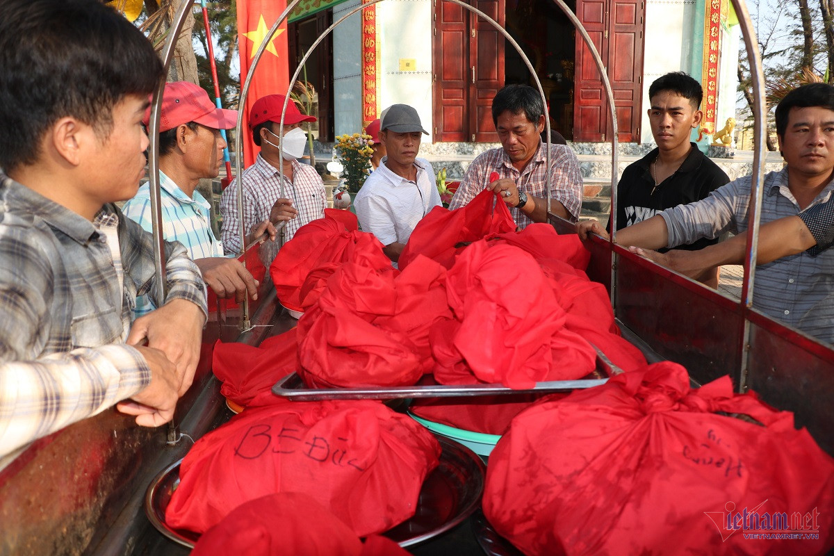 “Cốt “Ông” tiếp đó được đặt vào tấm vải đỏ, gói lại cẩn thận và ghi tên của chủ ghe lên bề mặt vải, tránh nhầm lẫn. Sau đó, để lên xe đẩy đưa về Dinh Ông làm lễ cúng, thờ tại đó”, anh Công - ngư dân hơn 10 năm đi biển chia sẻ.