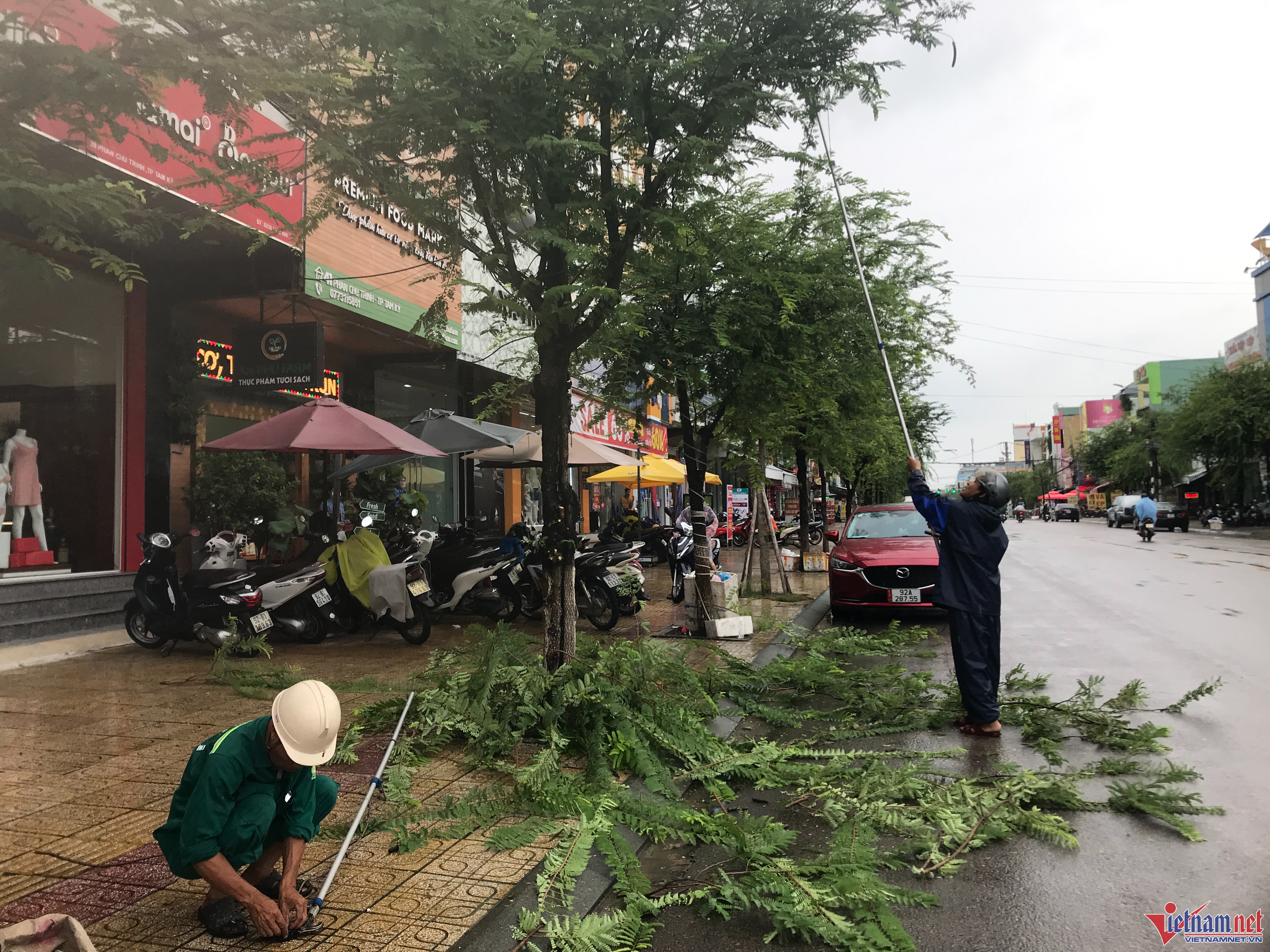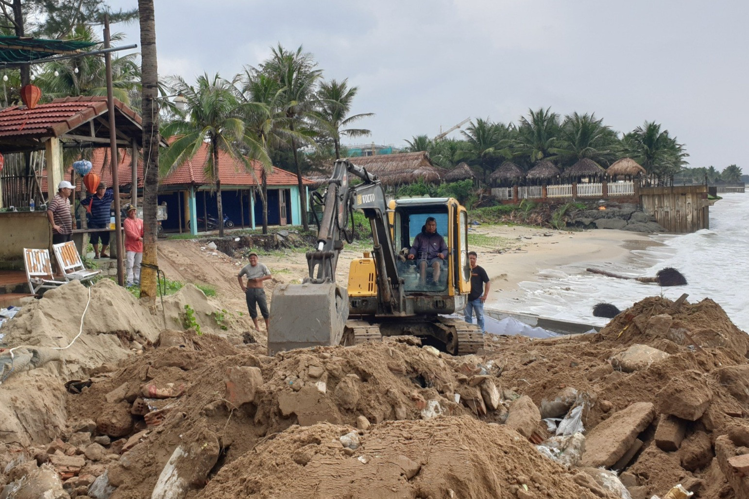 Lực lượng chức năng cắt tỉa cây xanh tại TP Tam Kỳ.Tại biển Cửa Đại (TP Hội An), nhiều nhà hàng mua đất, đá để gia cố bờ kè, hạn chế sóng biển nhà hàng. Ảnh: T.B.