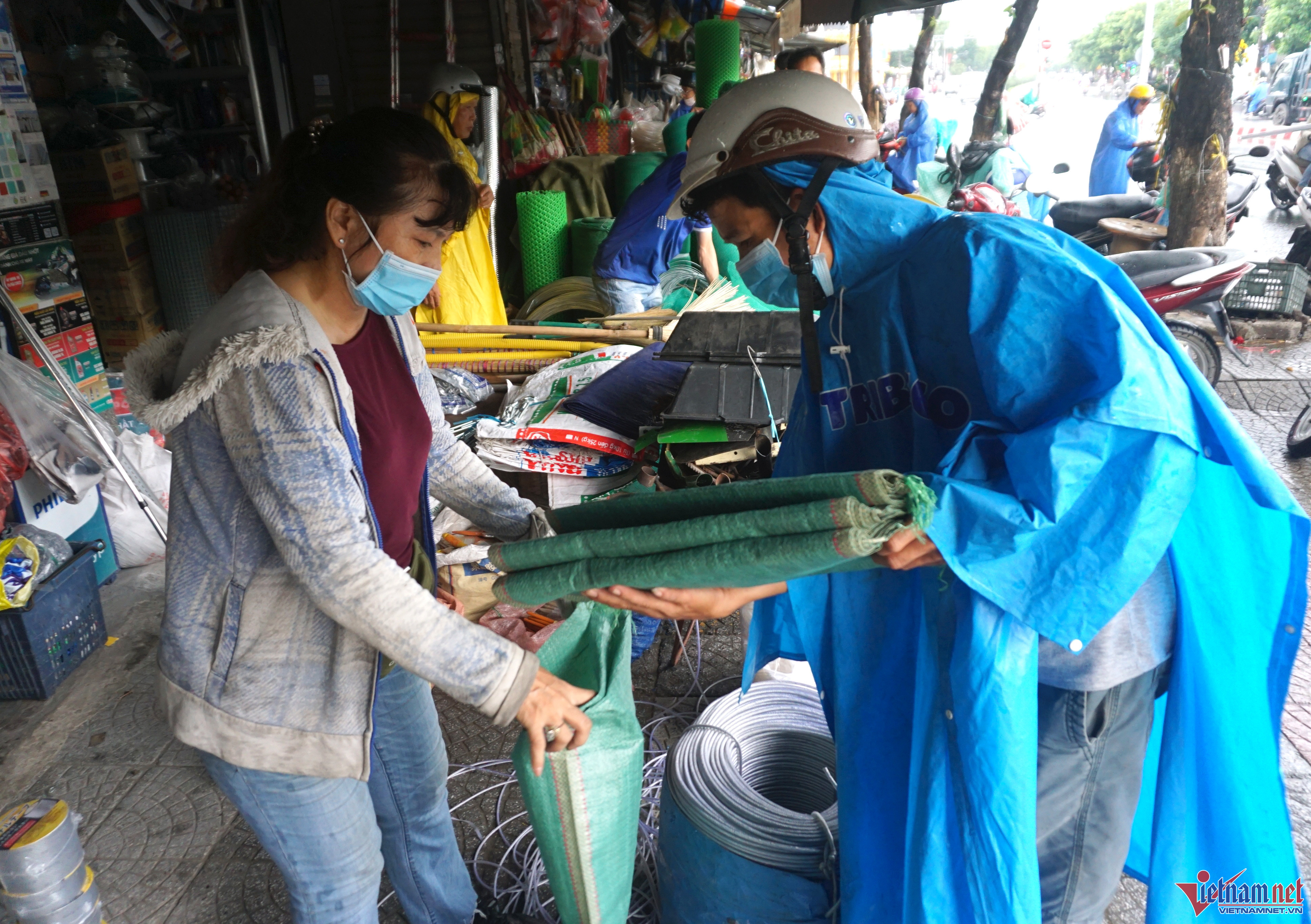 Sáng 26/9, tại các cửa hàng vật liệu xây dựng trên địa bàn quận Liên Chiểu, Cẩm Lệ, Hải Châu.., người dân hối hả đi mua các loại vật dụng để chèn chống nhà cửa, phòng tránh bão Noru (bão số 4).Ghi nhận của P.V VietNamNet, tại các cửa hàng vật liệu xây dựng trên đường Tôn Đức Thắng, Nguyễn Lương Bằng (quận Liên Chiểu)... tấp nập người mua hàng Các mặt hàng "đắt khách" là bao tải, dây thép, dây cáp, đinh vít..."Đọc báo biết bão số 4 mạnh, có thể tâm bão quét qua Đà Nẵng nên gia đình tôi rất lo lắng. Sáng nay, tôi tranh thủ mua thép về chằng lại mái nhà và các cánh cửa; mua sắm thêm các thiết bị điện sạc pin, pin dự phòng... để đề phòng trường hợp mất điện kéo dài sau bão", anh Lê Phước Duy (ngụ quận Liên Chiểu) cho hay."Từ sớm người dân đã đổ xô đi mua dây thừng, bao tải đựng cát, dây thép, túi ny lon...về chống bão. Giá cả vẫn vậy, chúng tôi không lợi dụng thời điểm khó khăn để tăng giá", chủ cửa hàng trên đường Tôn Đức Thắng chia sẻ.Bao tải được nhiều người dân chọn muaGiá các loại bao từ 5.000 đến 10.000 đồng/bao. Ngoài bao cát, thị trường các mặt hàng như dây, đèn pin, các vật dụng tích điện cũng được người dân mua nhiều Các hộ kinh doanh dịch vụ khu vực biển quận Sơn Trà và Ngũ Hành Sơn đang cấp tốc dọn dẹp hàng quán, ứng phó với bão NoruNgười dân bơm nước vào bao nylon đưa lên mái nhà để phòng chống bão