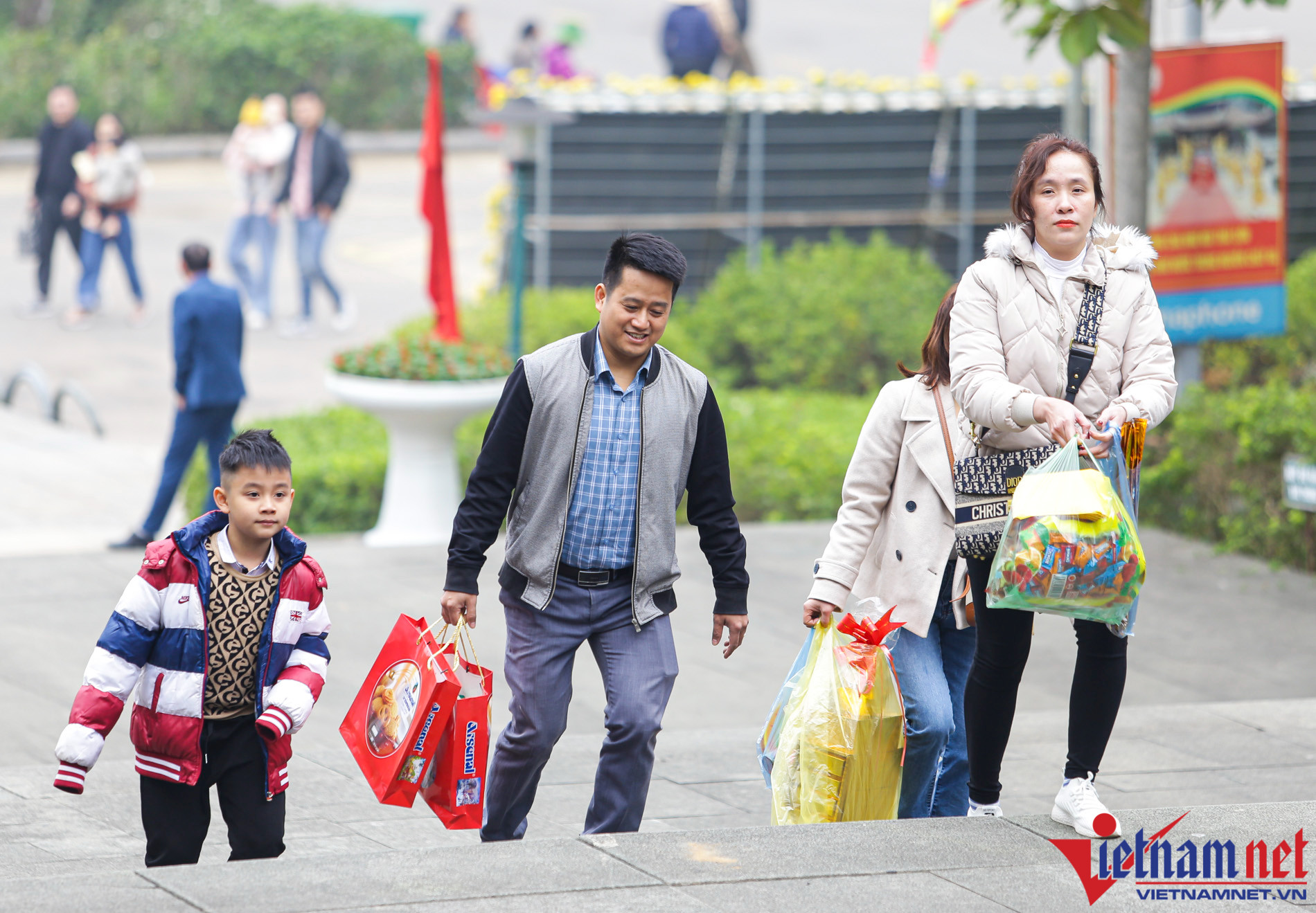 Gia đình chị Nguyễn Linh (Lam Sơn, Tam Nông, Phú Thọ) đã chuẩn bị lễ từ trước Tết, để hôm nay lên đền Hùng đi du xuân, cầu mong cho một năm mới tốt lành.