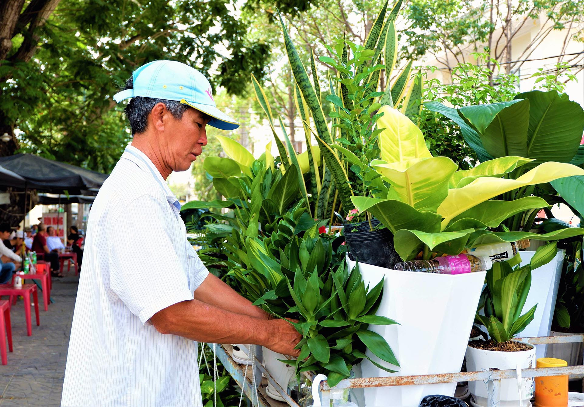 Hiện, mỗi tháng, ông mua 6 bao lúa (300kg), hết khoảng 3 triệu đồng, làm thức ăn cho chim. Ông đã “chuyển nghề” từ bán bánh bò sang bán cây kiểng dạo, thu nhập khá lên.