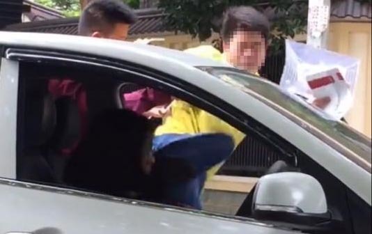 Sáng nay, nhiều trang mạng xã hội đăng tải video ghi lại cảnh người phụ nữ chạy xe ô tô màu trắng mang BKS 29D- 308xxx, khi dừng xe ở khu vực phố Thọ Tháp, (phường Dịch Vọng, quận Cầu Giấy, Hà Nội) thì bị 1 người đàn ông mặc áo vàng lại mở cửa xe.