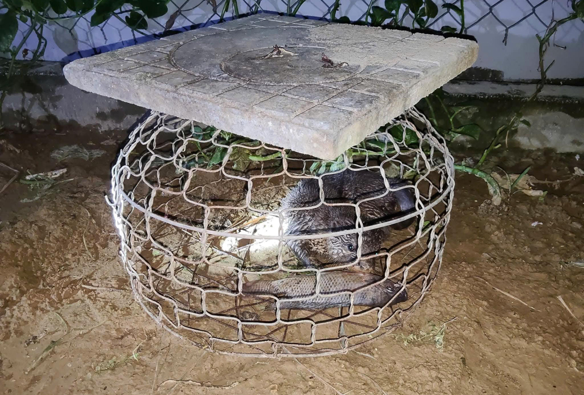 Trước đó, tối 28/7, anh Mai Chiếm Lĩnh (trú khu phố 3, phường Đông Hà) bắt cá trên sông Hiếu thì phát hiện con rái cá chui vào lừ của mình.