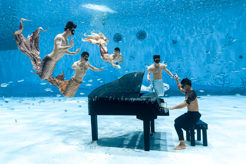 Biểu diễn tiên cá là hình thức giải trí ngày càng phổ biến ở Trung Quốc, đặc biệt với giới trẻ. Các video về chàng tiên cá biểu diễn trong thủy cung thường được lan truyền trên mạng xã hội. Thậm chí còn có cuộc thi chàng tiên cá cấp quốc gia, theo Sixthtone.