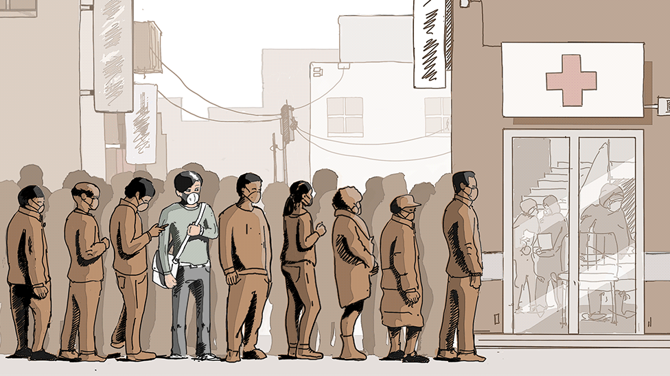 Vào 29/1, ông bà của Tiểu Hoàng được xác định dương tính với corona nhưng 3 ngày sau 2 người mới được nhập viện. Dù ông bà Tiểu Hoàng sốt cao, khó thở cũng chỉ được ngồi ở hành lang do quá tải và thiếu thiết bị y tế. Sau khi cầu xin các y tá, họ được cho mượn một chiếc ghế dài và một chiếc giường gấp.
