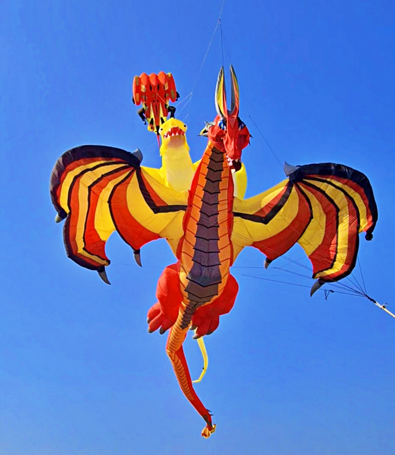 Đó là con diều hình rồng châu Âu. Con diều có chiều ngang 9m, dài 18m được một nghệ nhân người Đức chế tác thủ công 100% trong 400 giờ đồng hồ. Đây được xem là con diều thương mại đắt nhất thế giới.