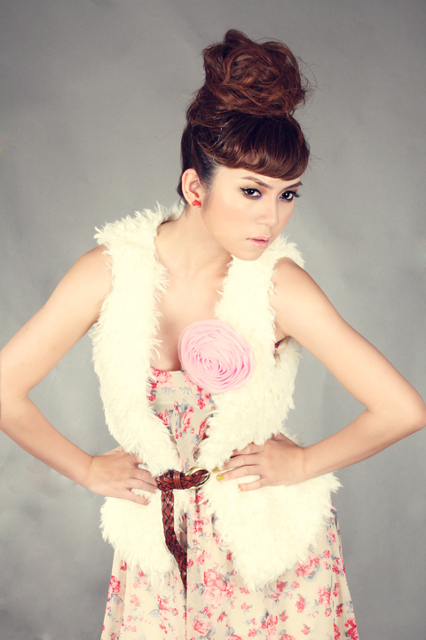 Trong bộ hình chụp studio trước giờ album ra mắt, Mi Lan trang điểm ấn tượng với tóc bới cao, mắt kẻ Cleopatra, tông màu cam nóng, quen thuộc và son môi hồng nhạt... như một cô búp bê gọn gàng, nhỏ nhắn.