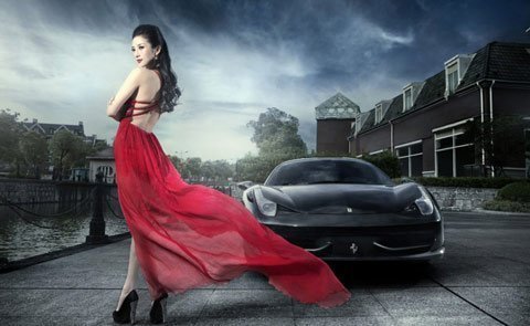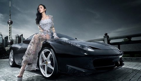 Người đẹp trông vô cùng gợi cảm và quyến rũ trong những bộ váy ren thướt tha bên cạnh siêu xe Ferrari màu đen sang trọng và mạnh mẽ.