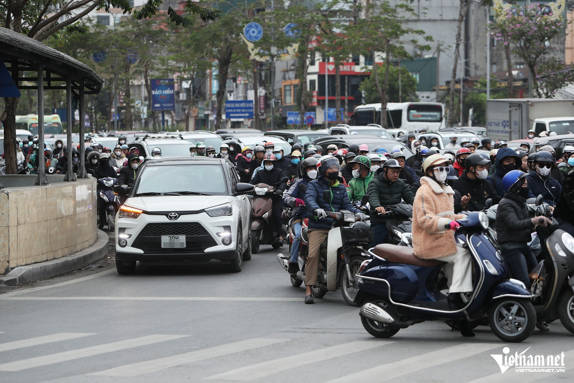 Thậm chí, có nhiều tốp người đi xe máy đứng lấn lên giữa ngã tư, cản trở đường đi.