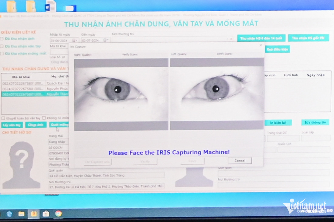 Quy trình này chỉ mất từ 3-5 giây: người dân mở to mắt và nhìn thẳng vào thiết bị quét mống mắt, dữ liệu sẽ được máy ghi lại trên hệ thống.