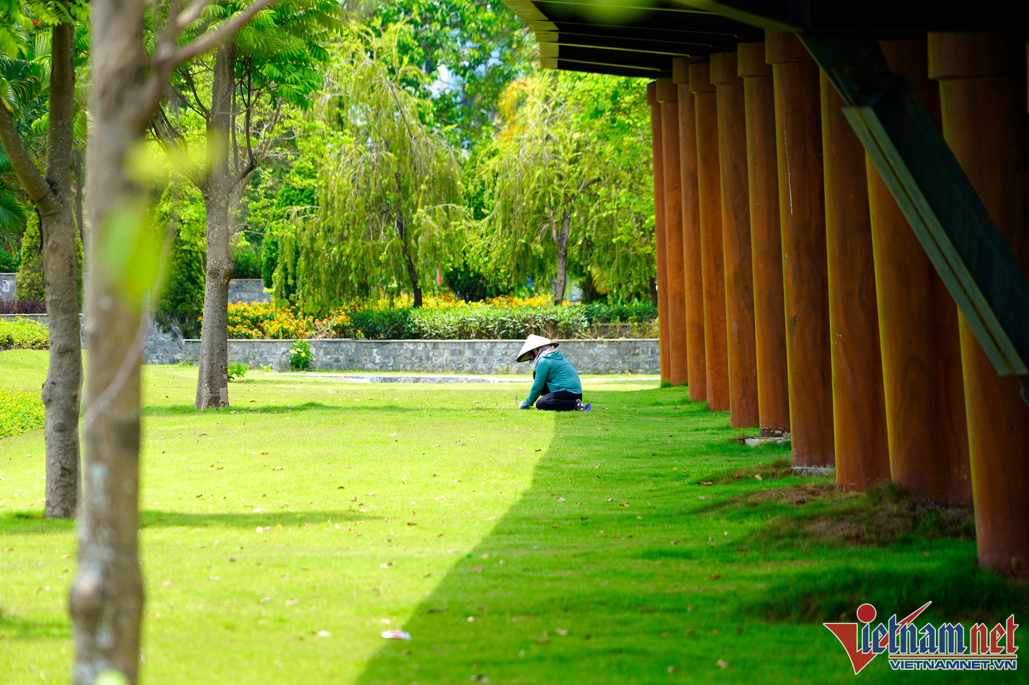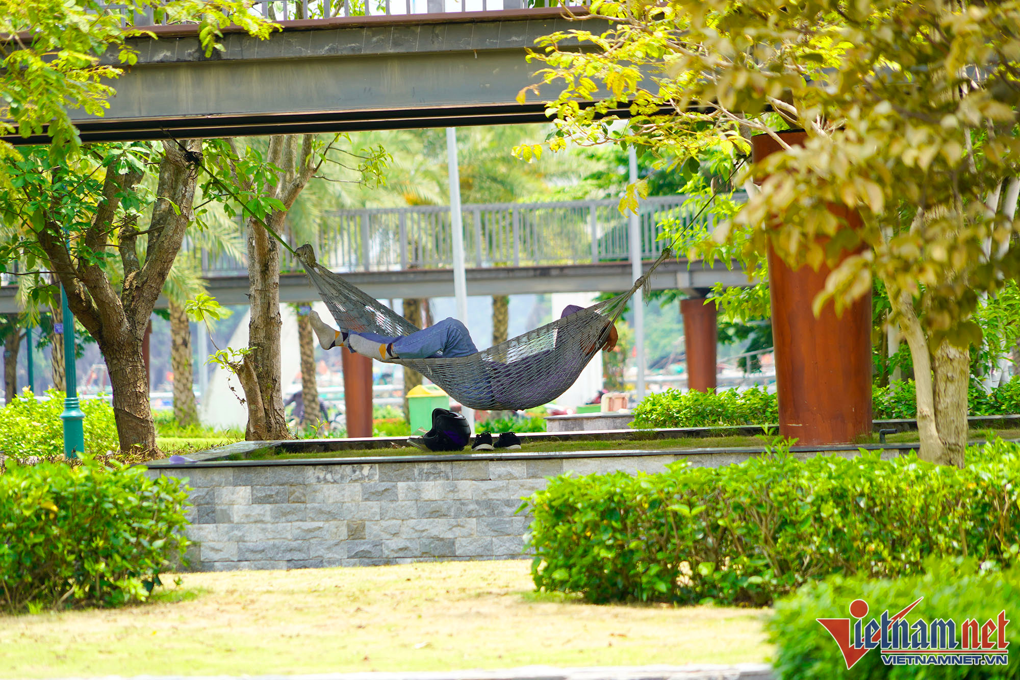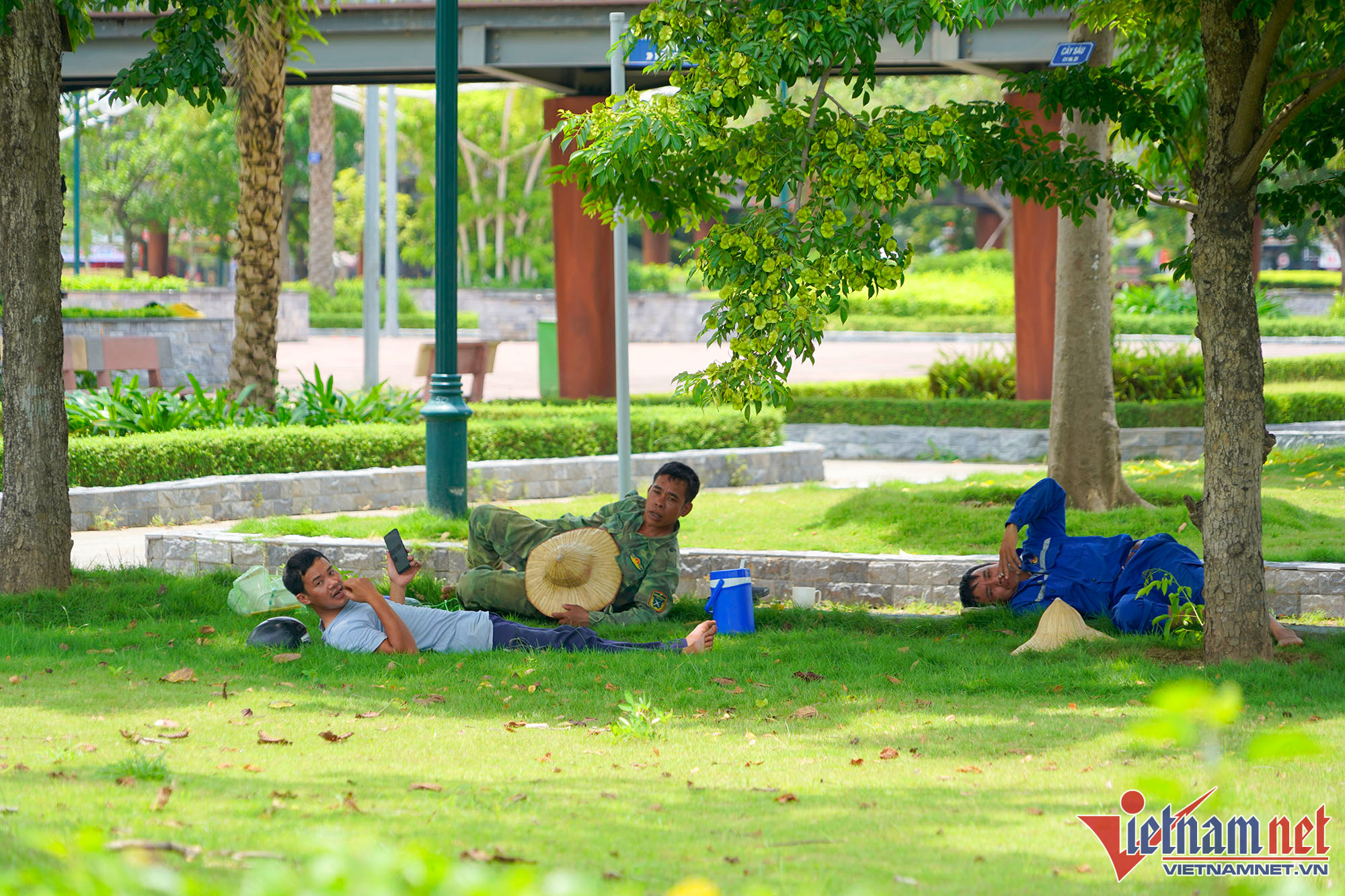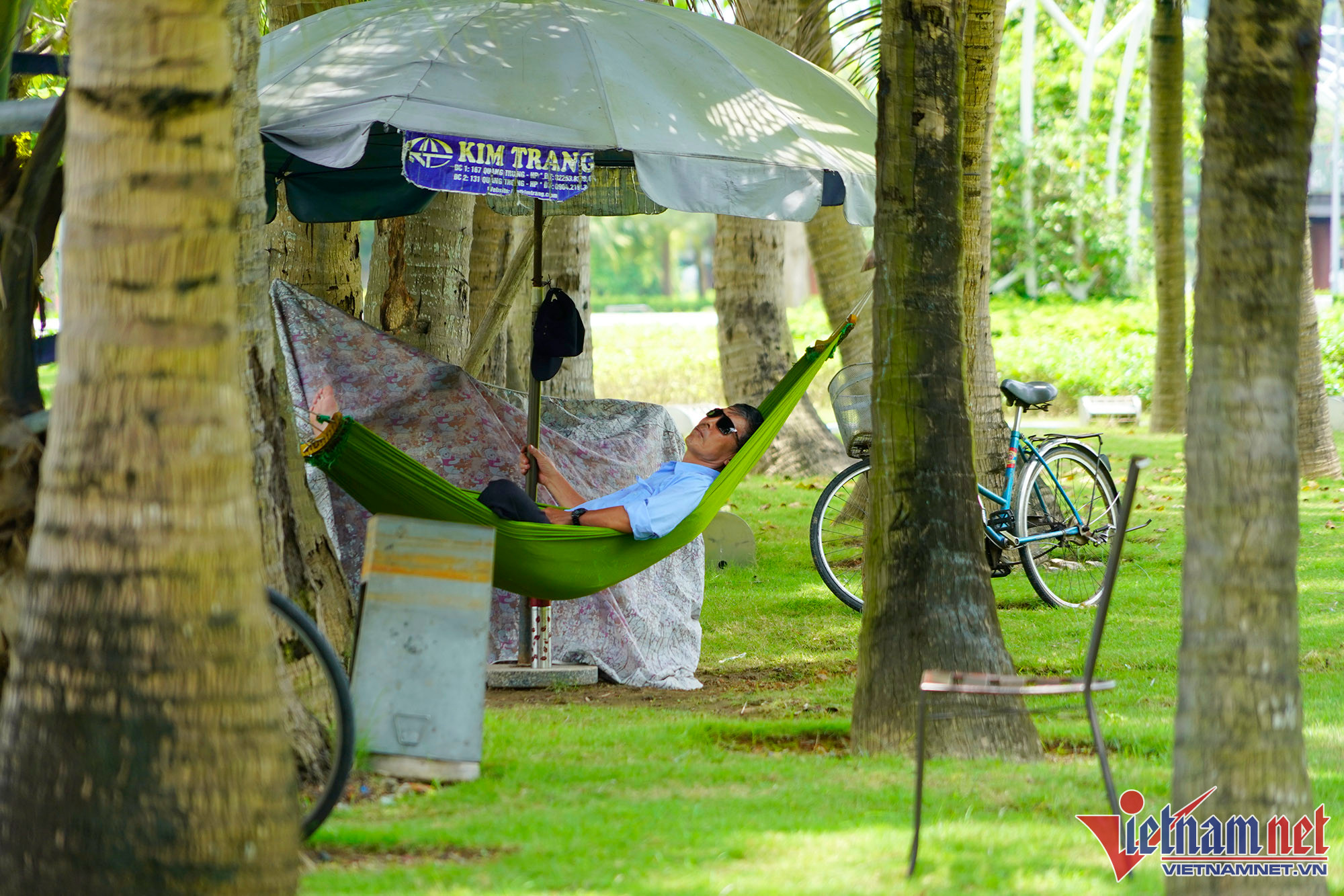 Buổi trưa khi nhiệt độ cao nhất, nhiều người tới công viên hoa trung tâm TP Hạ Long để nằm nghỉ, hóng gió mát từ biển thổi vào.