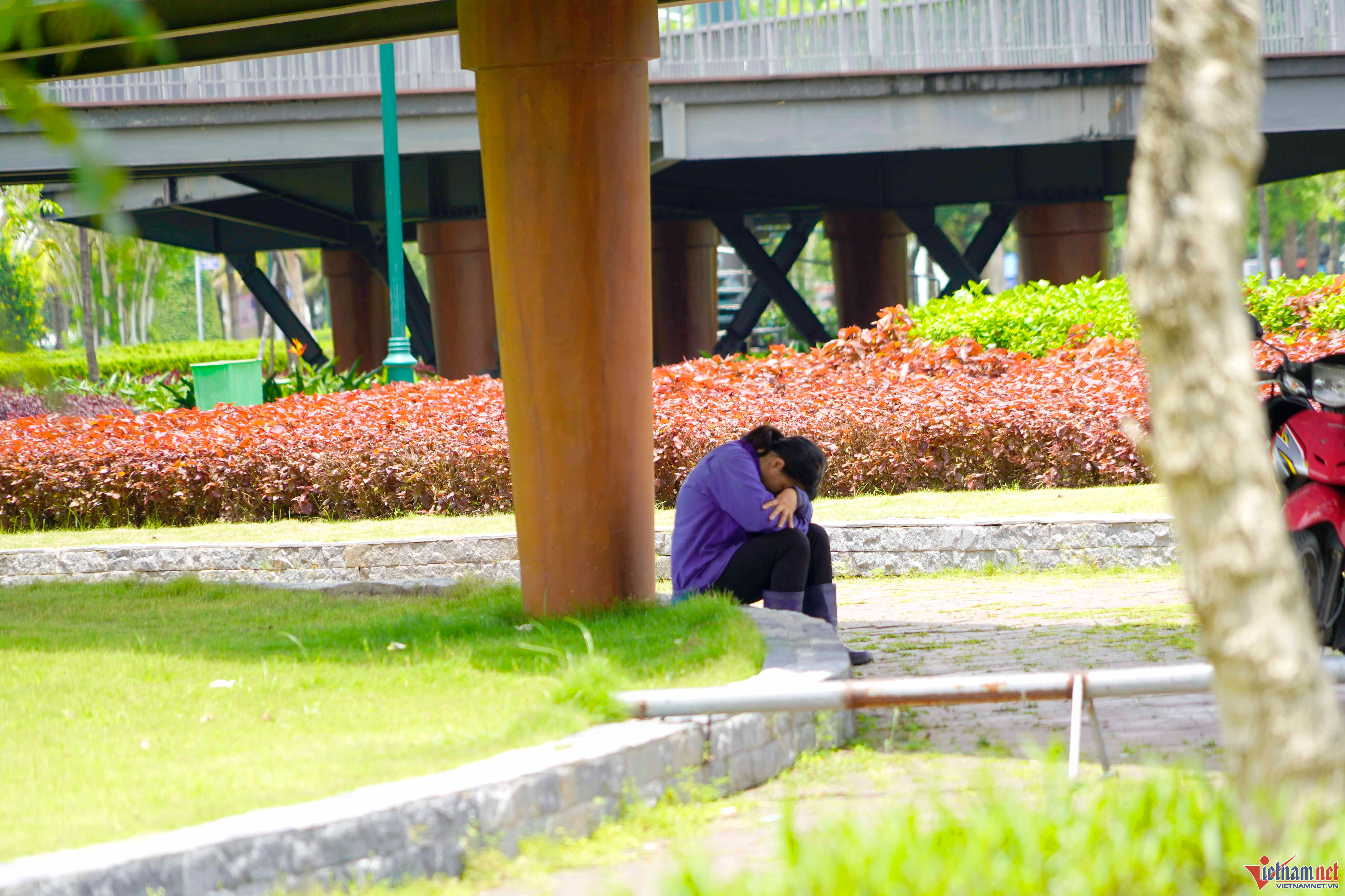 "Nhà tôi không có điều hoà, thời tiết này bật quạt trong nhà cũng nóng trưa nào. Tôi cũng ra đây nằm nghỉ lấy sức để chiều còn đi làm", ông Lê Xuân Hướng (52 tuổi, bán hoa quả hàng rong) cho biết.