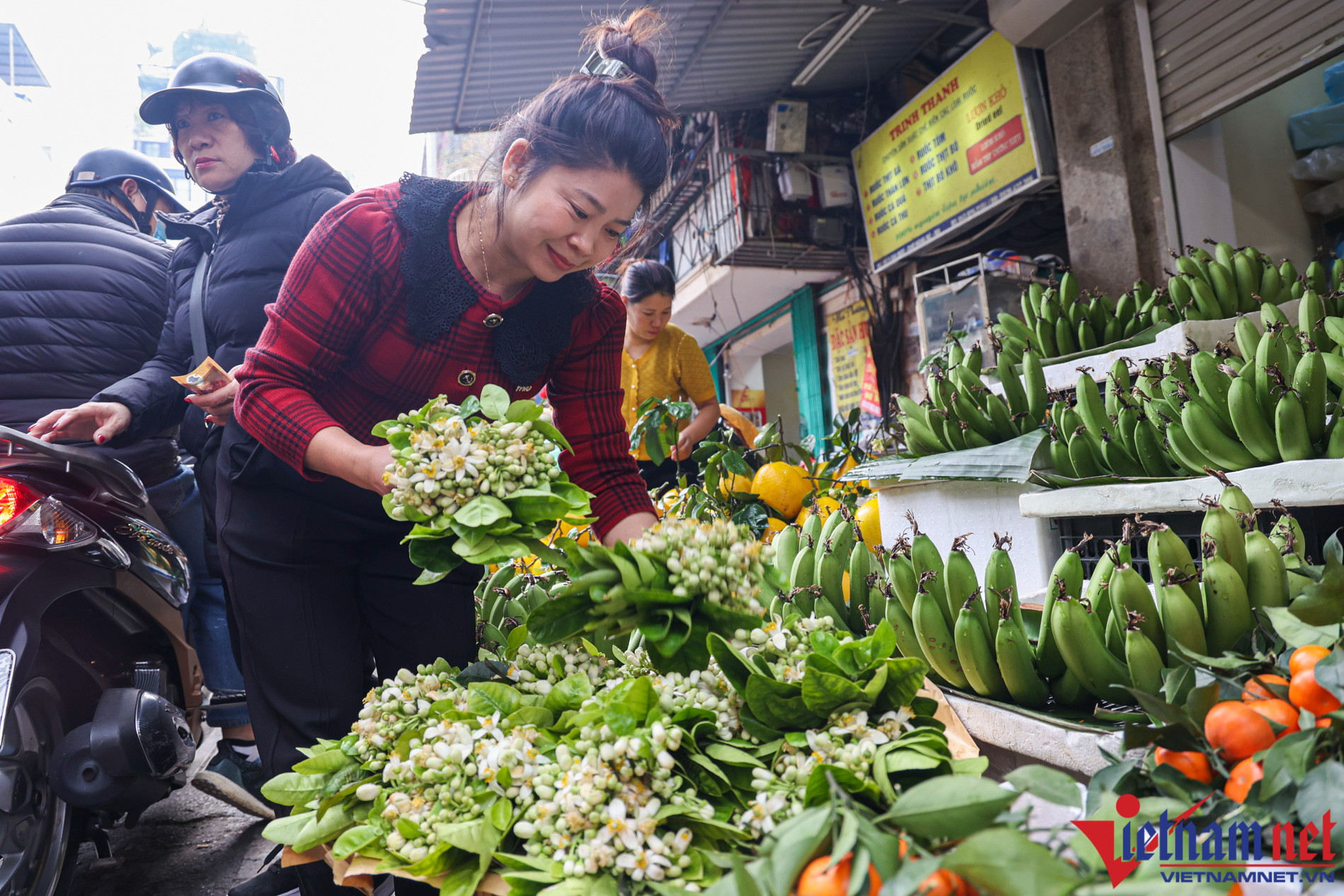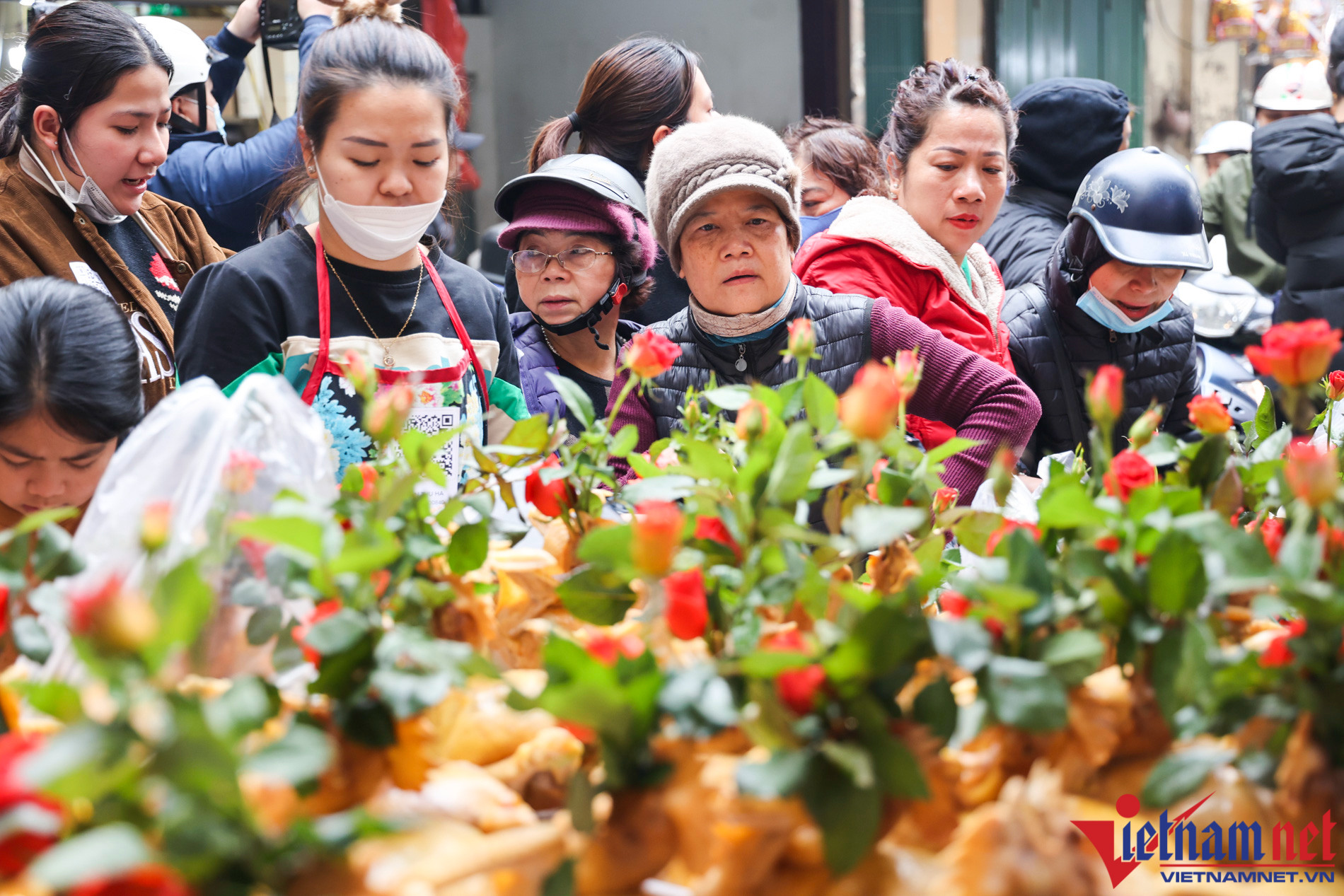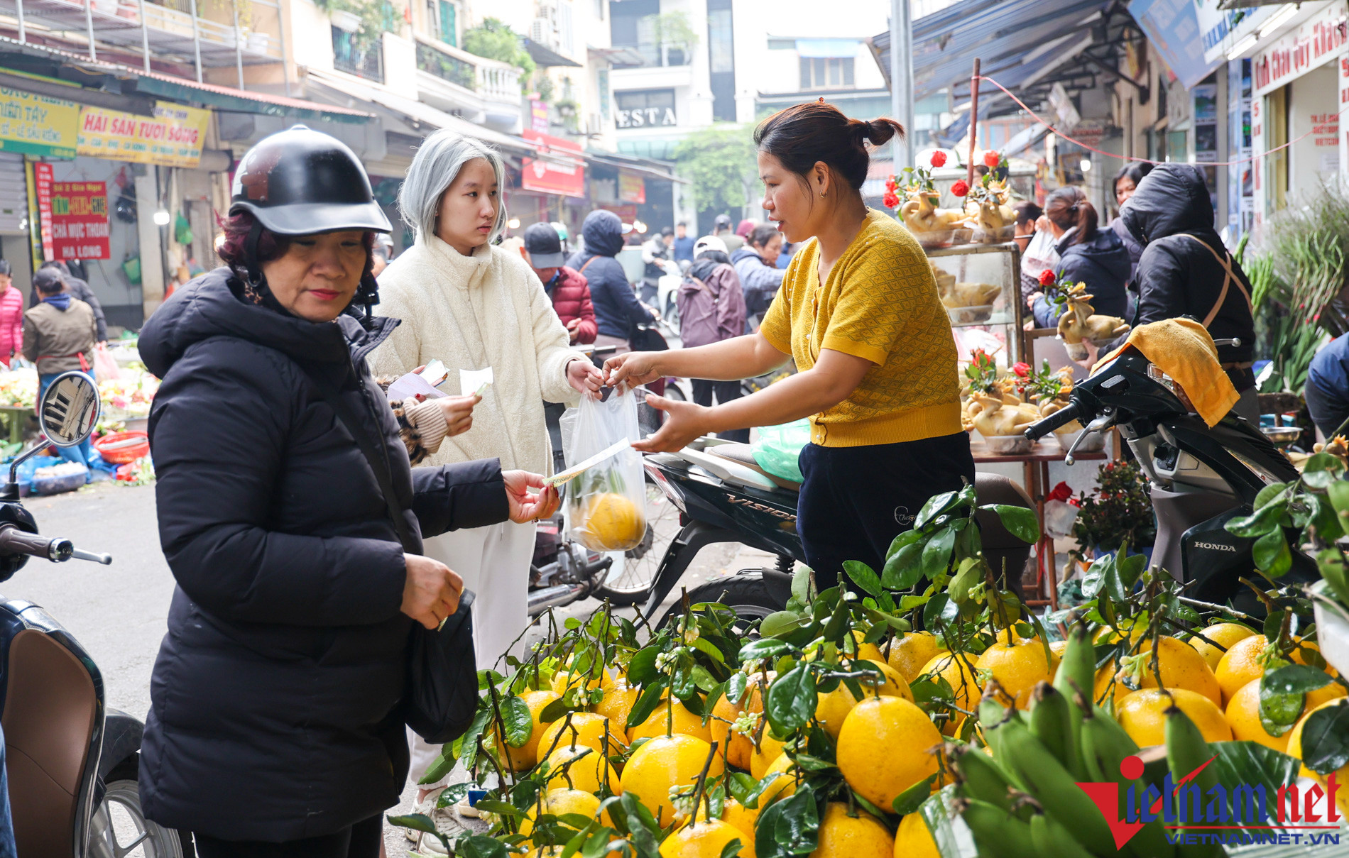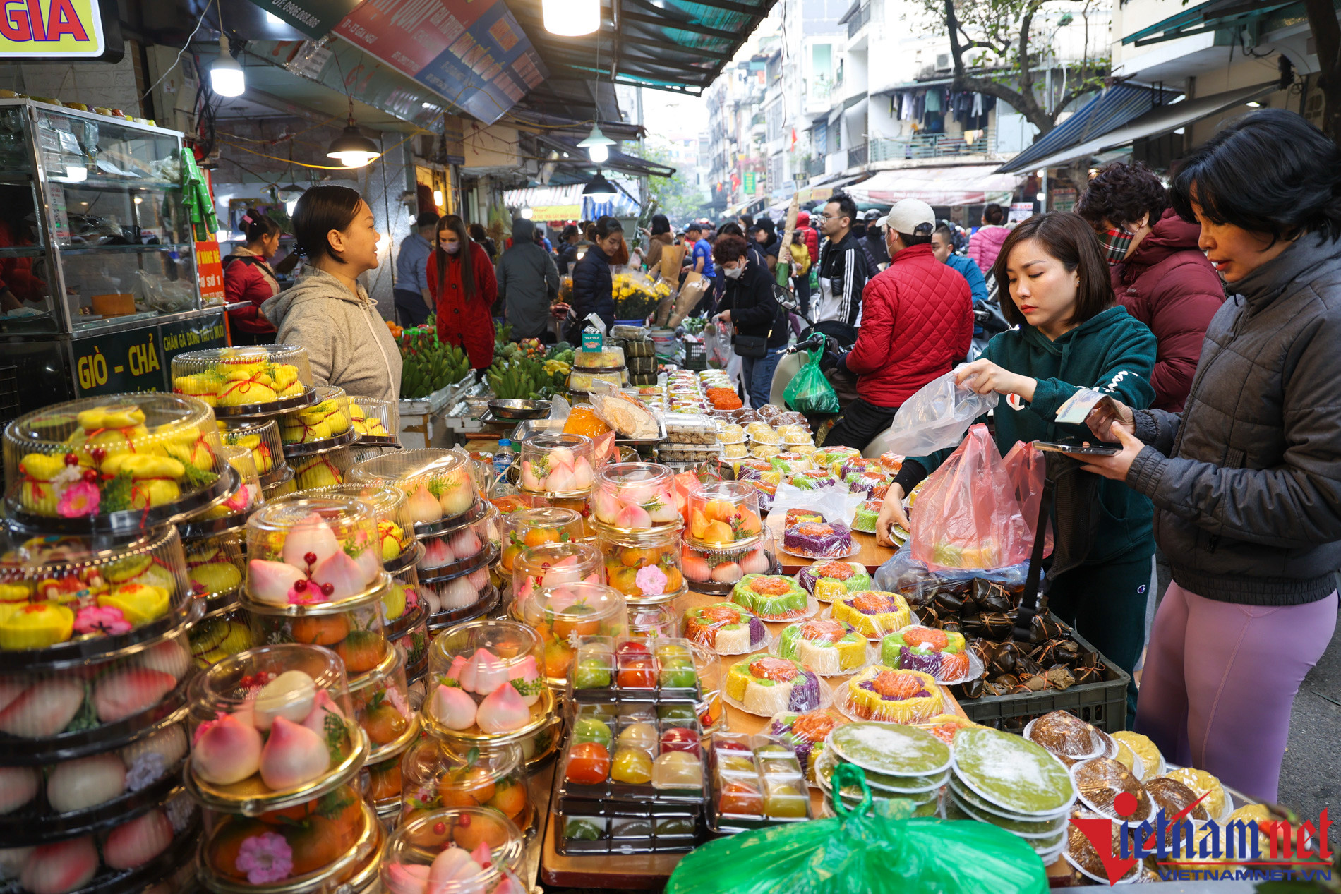 Sáng nay, con ngõ nhỏ trên phố Gia Ngư và khu vực chợ Hàng Bè tấp nập người dân mua sắm đồ ăn cho 3 ngày Tết.