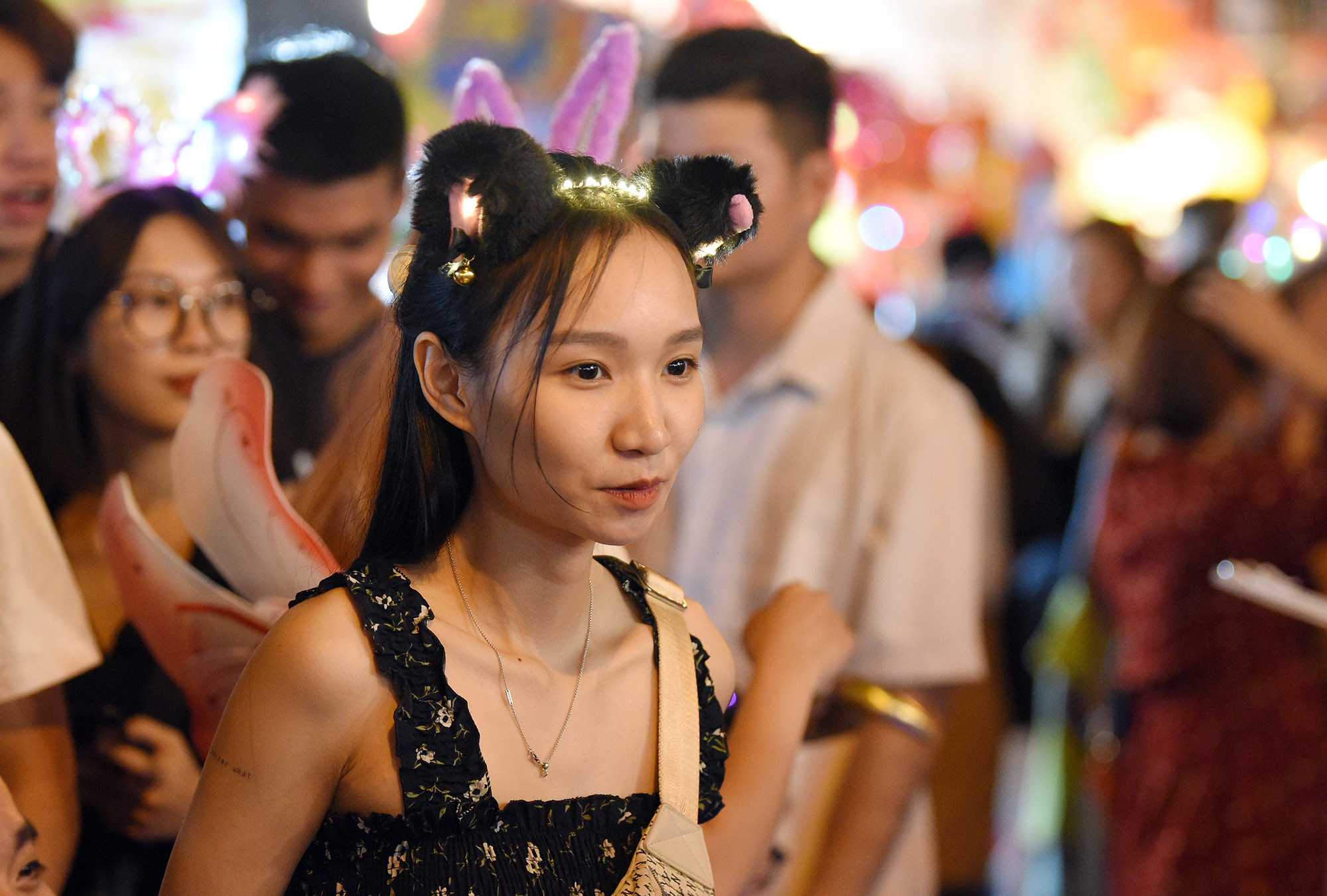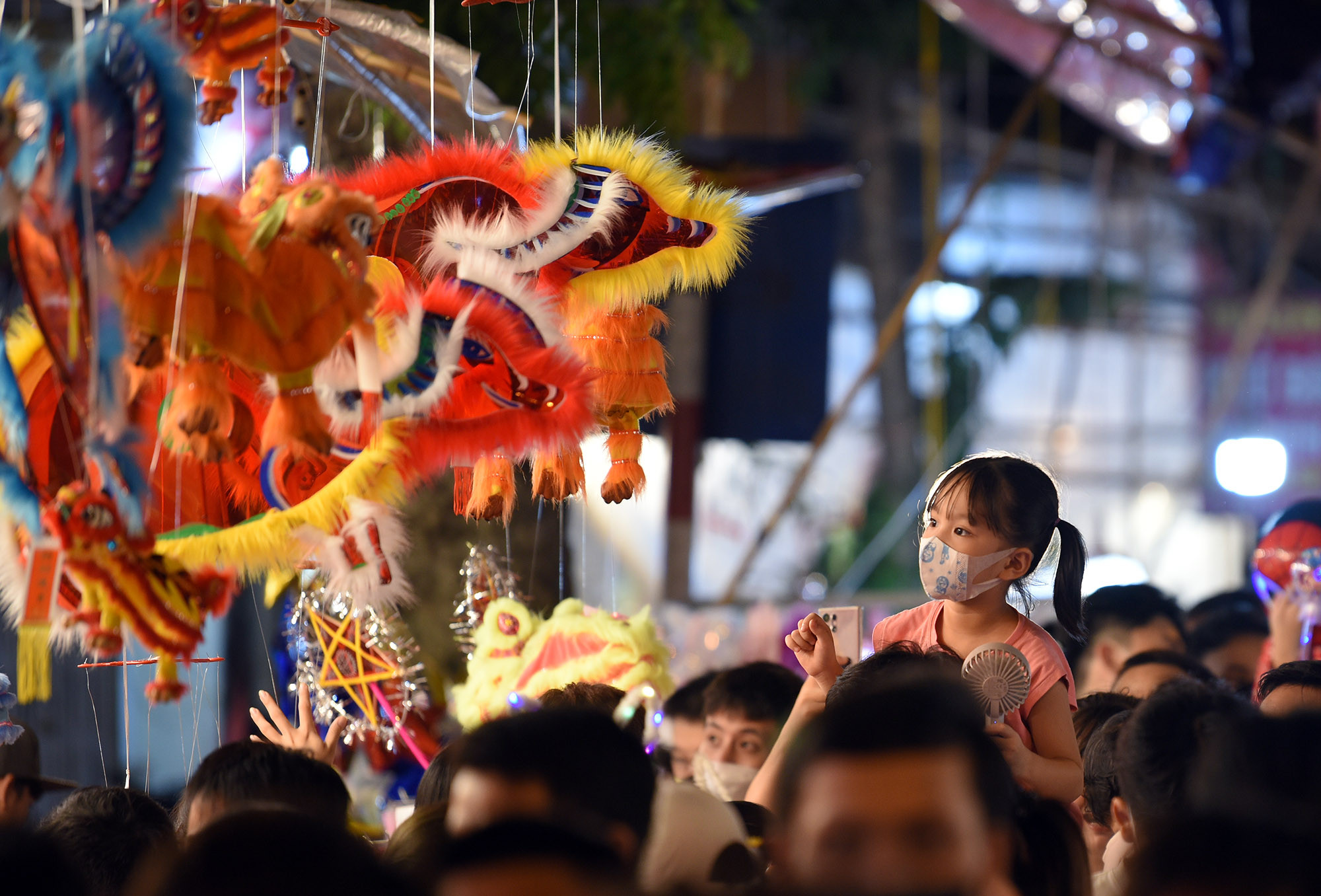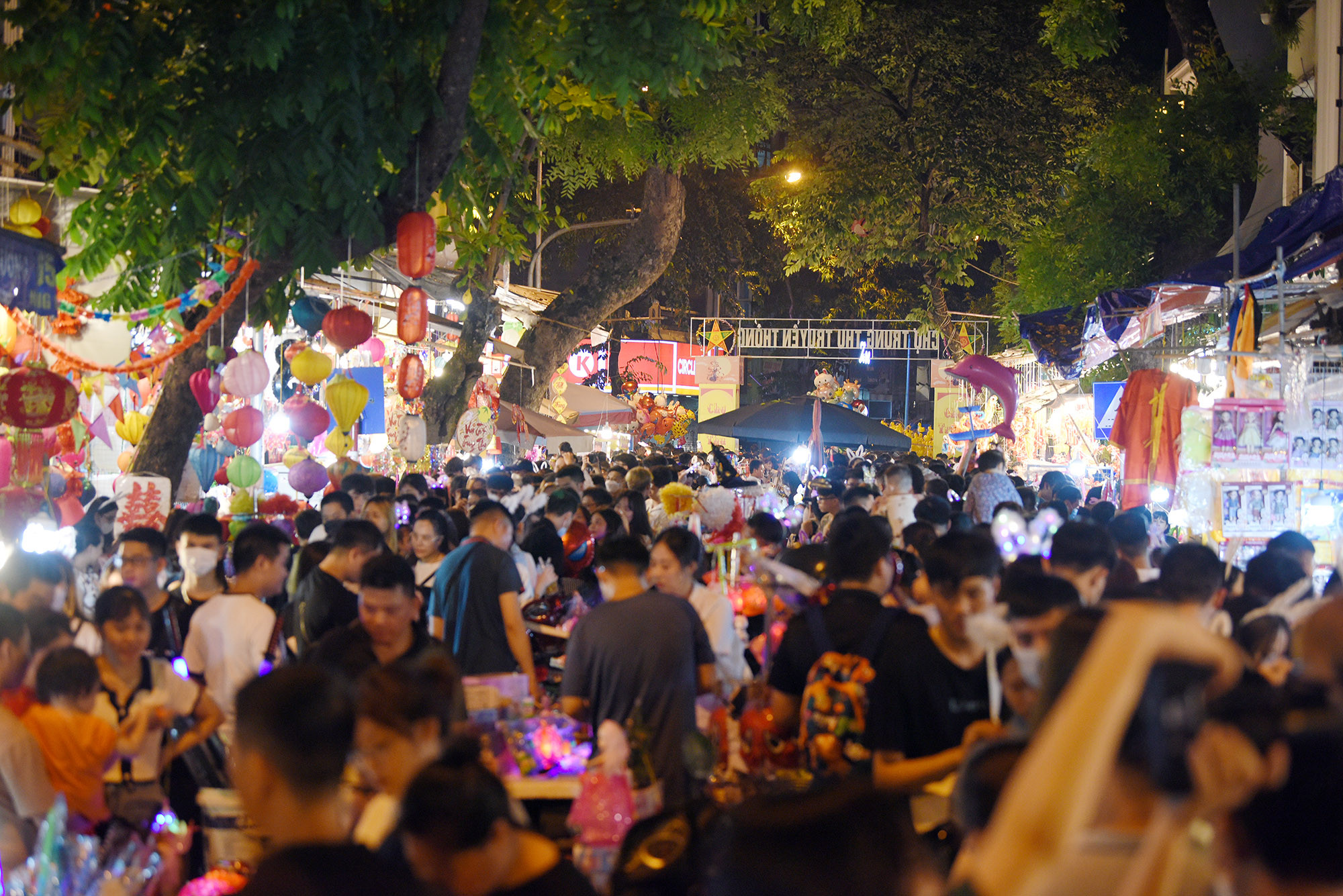 Tối 10/9, biển người đổ về phố Hàng Mã, Hà Nội vui chơi, mua sắm trong đêm chính hội trăng rằm (15/8 Âm lịch).Trong hơn một tuần qua, do lượng người đi chơi Trung thu sớm nhiều, Hàng Mã và các tuyến phố lân cận luôn nhộn nhịp vào buổi tối. Như mọi năm, đồ chơi giá rẻ tràn ngập, các chủ hàng bày tràn ra đường nhằm thu hút khách. Thanh niên đổ về đây dạo chơi rất đông.Nhiều cô gái tới phố cổ đêm Trung thu chỉ để chụp ảnh, hoặc được đắm mình trong không khí lễ hội.Lúc cao điểm buổi tối, dòng người chen chân, di chuyển chậm.Lượng người mỗi lúc một đông, nhích từng bước.Sắc màu rực rỡ của đèn lồng, đầu lân và các món đồ chơi Trung thu khiến nơi đây trở thành điểm chụp ảnh lý tưởng của nhiều gia đình và các bạn trẻ.Gần đó, một sân khấu Trung thu cho trẻ em địa bàn quận Hoàn Kiếm được tổ chức với các tiết mục ca nhạc và trình diễn múa lân.Các em thiếu nhi quận Hoàn Kiếm cũng được rước đèn ông sao.Mâm cỗ trông trăng, rước đèn Tết Trung thu của phường Hàng Buồm, Hàng Bài, Cửa Nam.
