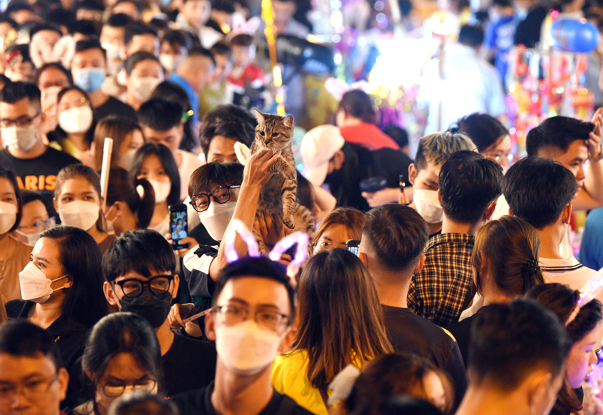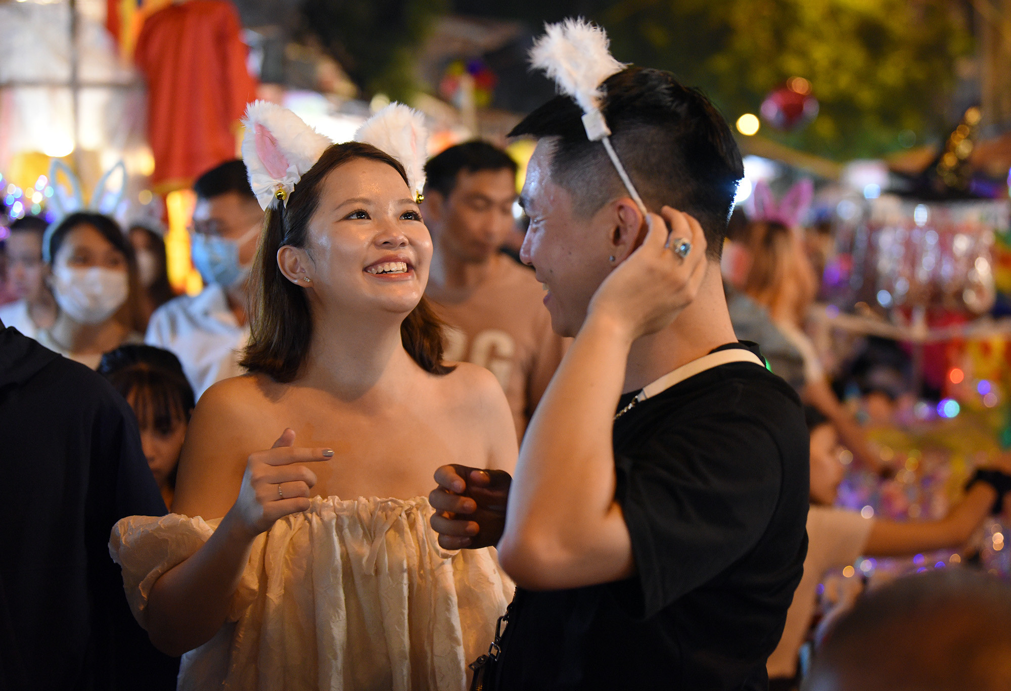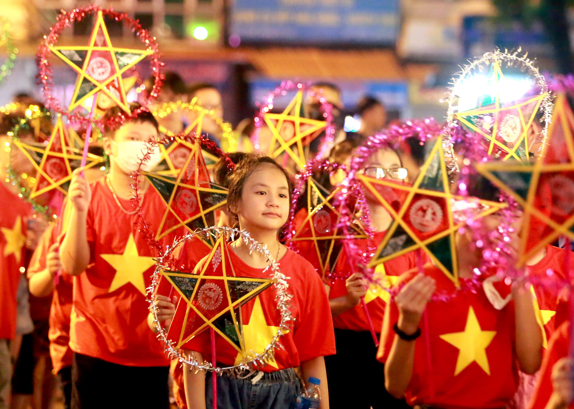 Tối 10/9, biển người đổ về phố Hàng Mã, Hà Nội vui chơi, mua sắm trong đêm chính hội trăng rằm (15/8 Âm lịch).Trong hơn một tuần qua, do lượng người đi chơi Trung thu sớm nhiều, Hàng Mã và các tuyến phố lân cận luôn nhộn nhịp vào buổi tối. Như mọi năm, đồ chơi giá rẻ tràn ngập, các chủ hàng bày tràn ra đường nhằm thu hút khách. Thanh niên đổ về đây dạo chơi rất đông.Nhiều cô gái tới phố cổ đêm Trung thu chỉ để chụp ảnh, hoặc được đắm mình trong không khí lễ hội.Lúc cao điểm buổi tối, dòng người chen chân, di chuyển chậm.Lượng người mỗi lúc một đông, nhích từng bước.Sắc màu rực rỡ của đèn lồng, đầu lân và các món đồ chơi Trung thu khiến nơi đây trở thành điểm chụp ảnh lý tưởng của nhiều gia đình và các bạn trẻ.Gần đó, một sân khấu Trung thu cho trẻ em địa bàn quận Hoàn Kiếm được tổ chức với các tiết mục ca nhạc và trình diễn múa lân.Các em thiếu nhi quận Hoàn Kiếm cũng được rước đèn ông sao.Mâm cỗ trông trăng, rước đèn Tết Trung thu của phường Hàng Buồm, Hàng Bài, Cửa Nam.
