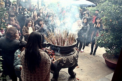Và tất cả mọi người đều không quên thắp nén hương cầu xin những điều tốt đẹp nhất cho mình và gia đình trong năm mới Nhâm Thìn
