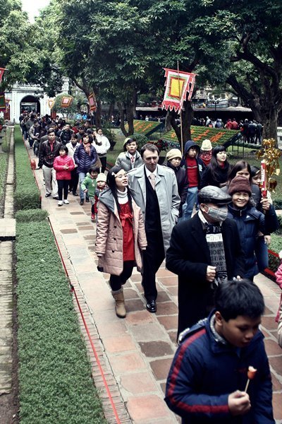 Tết năm nay, nhiệt độ trung bình của Hà Nội rơi vào khoảng 10 đến 11 độ. Tuy nhiên, dù có rét hơn thế nữa cũng chẳng thể cản nổi người dân Thủ đô đi lễ đầu năm.