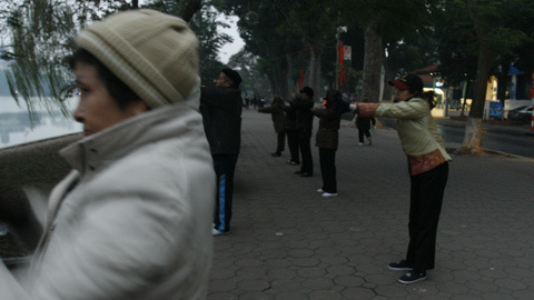 | Đã thành thói quen, dù trời lạnh đến mấy, người dân vẫn không bỏ thói quen thể dục buổi sáng |