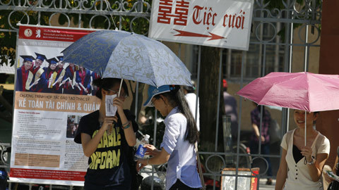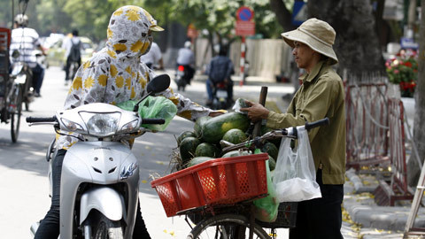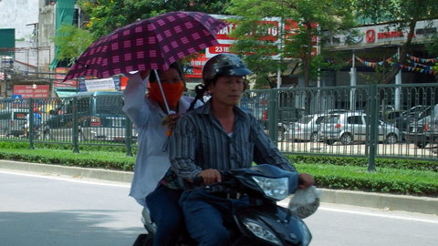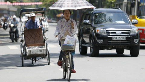Ngày 9/5, tại Hà Nội, có những thời điểm nhiệt độ ngoài trời đã lên tới gần 40 độ C. Vì là cái nóng đầu mùa nên nhiều người còn chưa kịp thích nghi và tỏ ra khá mệt mỏi. Bất cứ thứ gì có thể che nắng, tránh nóng đều được sử dụng một cách tối đa.