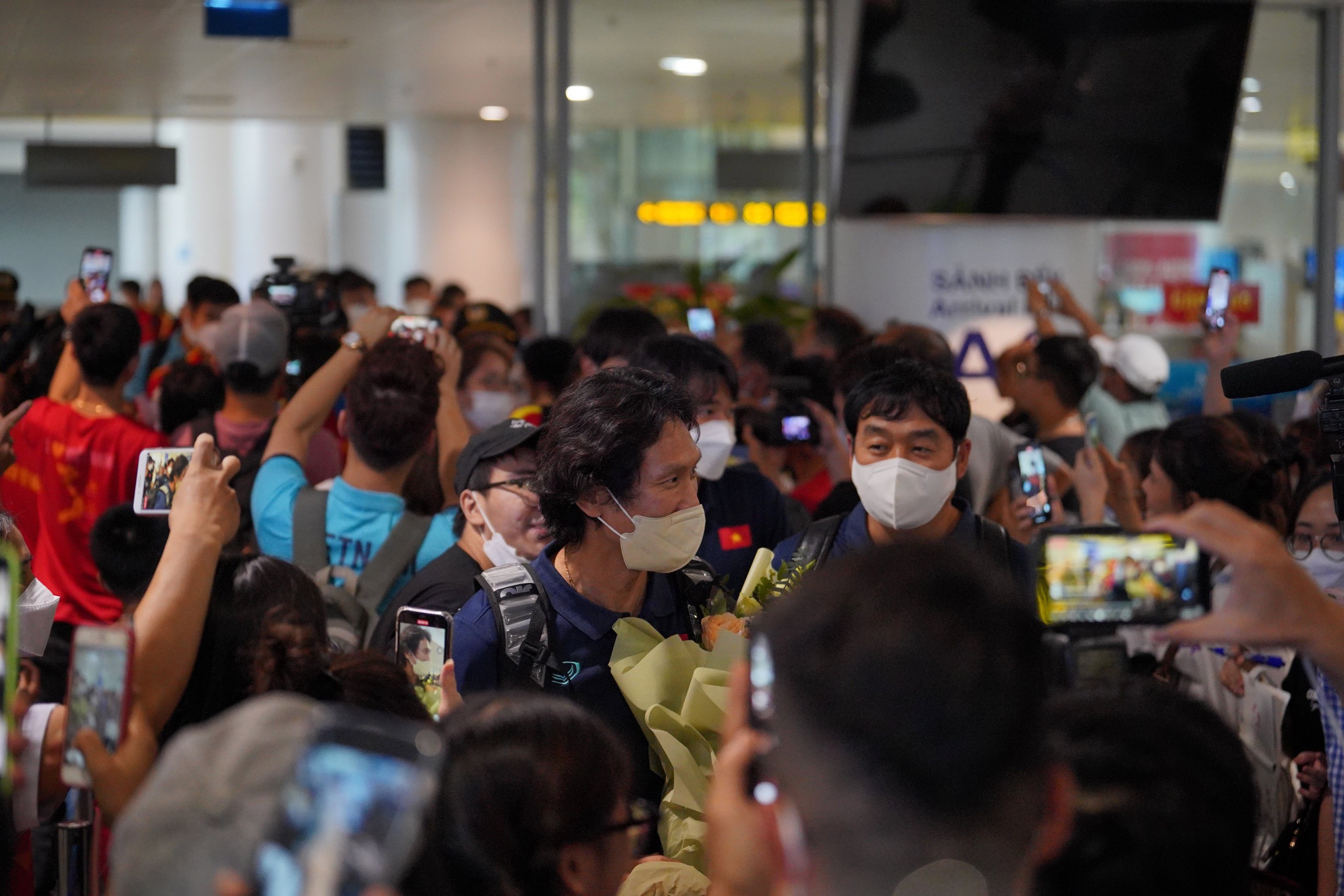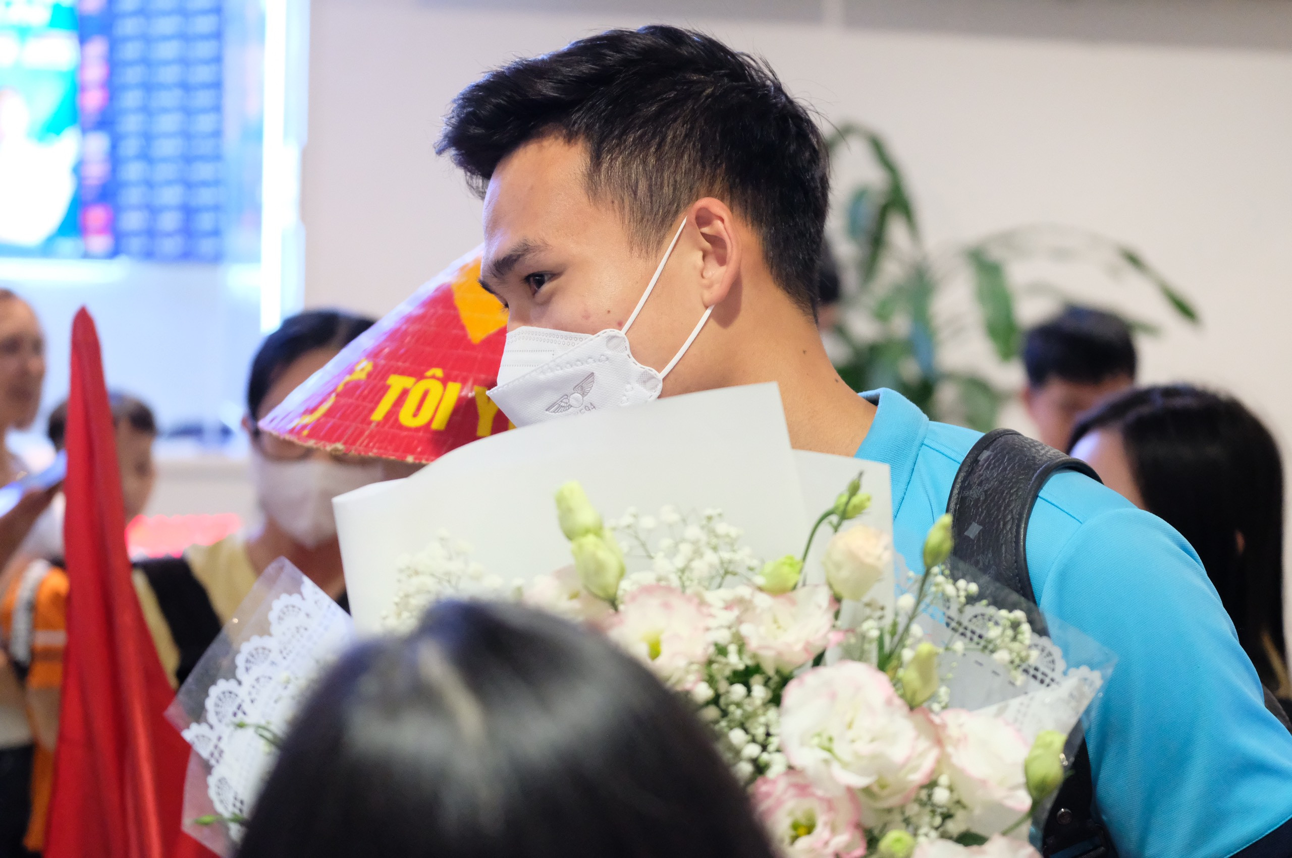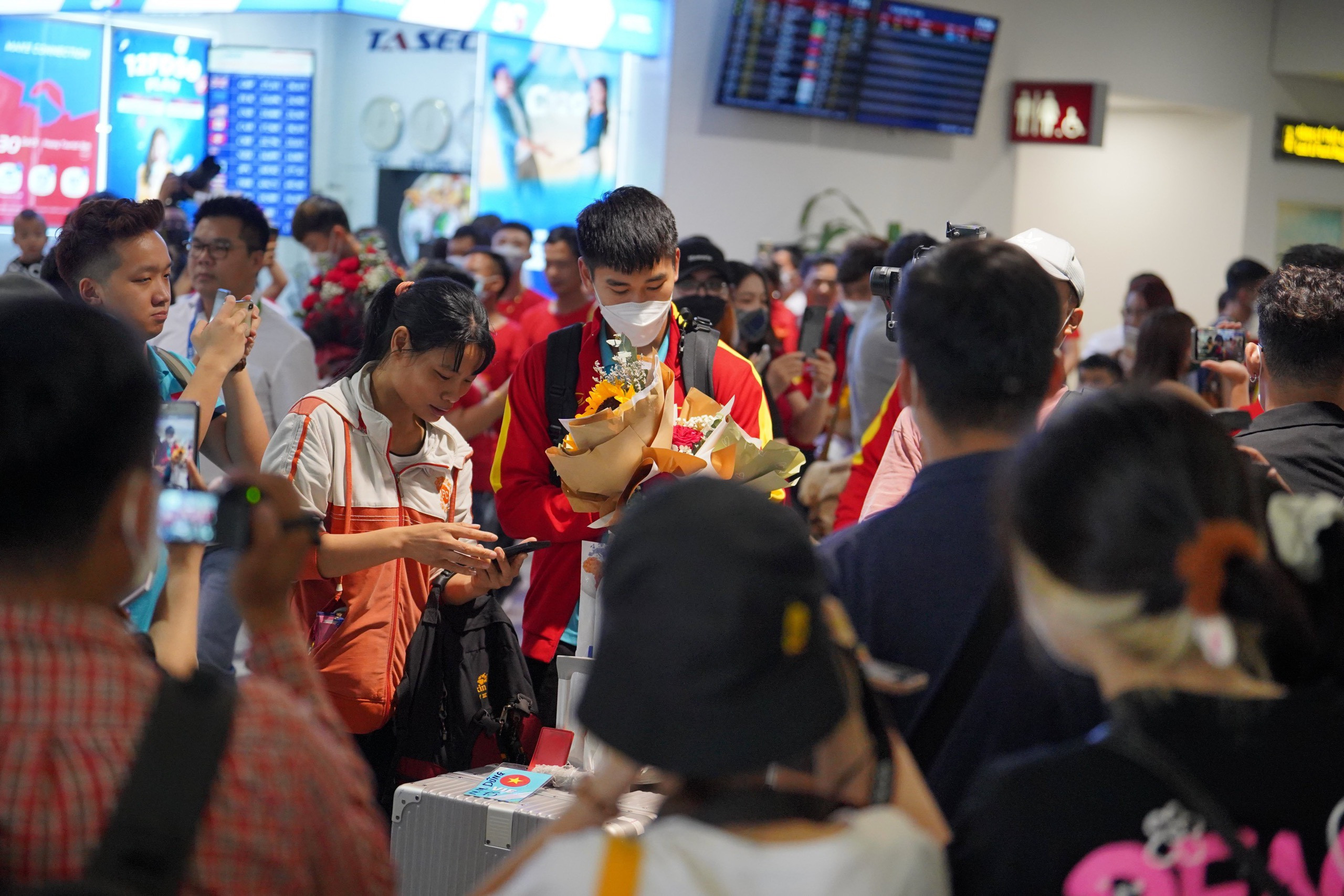 Chiều nay (15/6), các thành viên còn lại của U23 Việt Nam ở miền Bắc đã về đến sân bay Nội Bài. Trước đó, nhóm cầu thủ ở phía Nam về TP.HCM trong ngày 14/6. Ngay khi xuất hiện tại sảnh sân bay Nội Bài, thầy trò HLV Gong Oh Kyun được rất đông người hâm mộ chào đónNhâm Mạnh Dũng và các đồng đội trong vòng vây của người hâm mộU23 Việt Nam có giải đấu thành công khi vào tới tứ kết. Dù không tái lập được thành tích tại Thường Châu 2018, nhưng các cầu thủ trình diễn lối chơi tấn công đẹp mắt, hiệu quảU23 Việt Nam mang tới niềm tin cho người hâm mộ nước nhà. HLV Gong Oh Kyun mang tới nhiều nét mới trong lối chơi của U23 Việt Nam. Trong thời gian tới, HLV Gong sẽ hoàn tất khóa học HLV Pro tại Hàn Quốc, sau đó trở lại Việt Nam để tiếp tục công việc. Do Asiad 19 đã bị hoãn do ảnh hưởng của dịch Covid-19, nên công việc của ông Gong chủ yếu là quan sát các giải chuyên nghiệp và các giải trẻ quốc gia để tuyển chọn lực lượng cho U23 Việt Nam, phục vụ cho SEA Games 32 và vòng loại U23 châu Á diễn ra vào năm sauBùi Hoàng Việt Anh được người hâm mộ tặng hoaSau khi về nước, các cầu thủ sẽ trở về CLB chủ quản để chuẩn bị cho các giải đấu quốc gia sẽ lăn bóng trở lại vào đầu tháng 7 tới. Riêng bộ đôi cầu thủ trẻ Khuất Văn Khang và Nguyễn Văn Trường sẽ gia nhập ĐT U19 quốc gia, hiện đang tập trung tập luyện để tham dự giải vô địch U19 Đông Nam Á 2022Lứa U23 hiện tại rất có tiềm năng, nhiều cầu thủ mới chỉ 19-20 tuổi