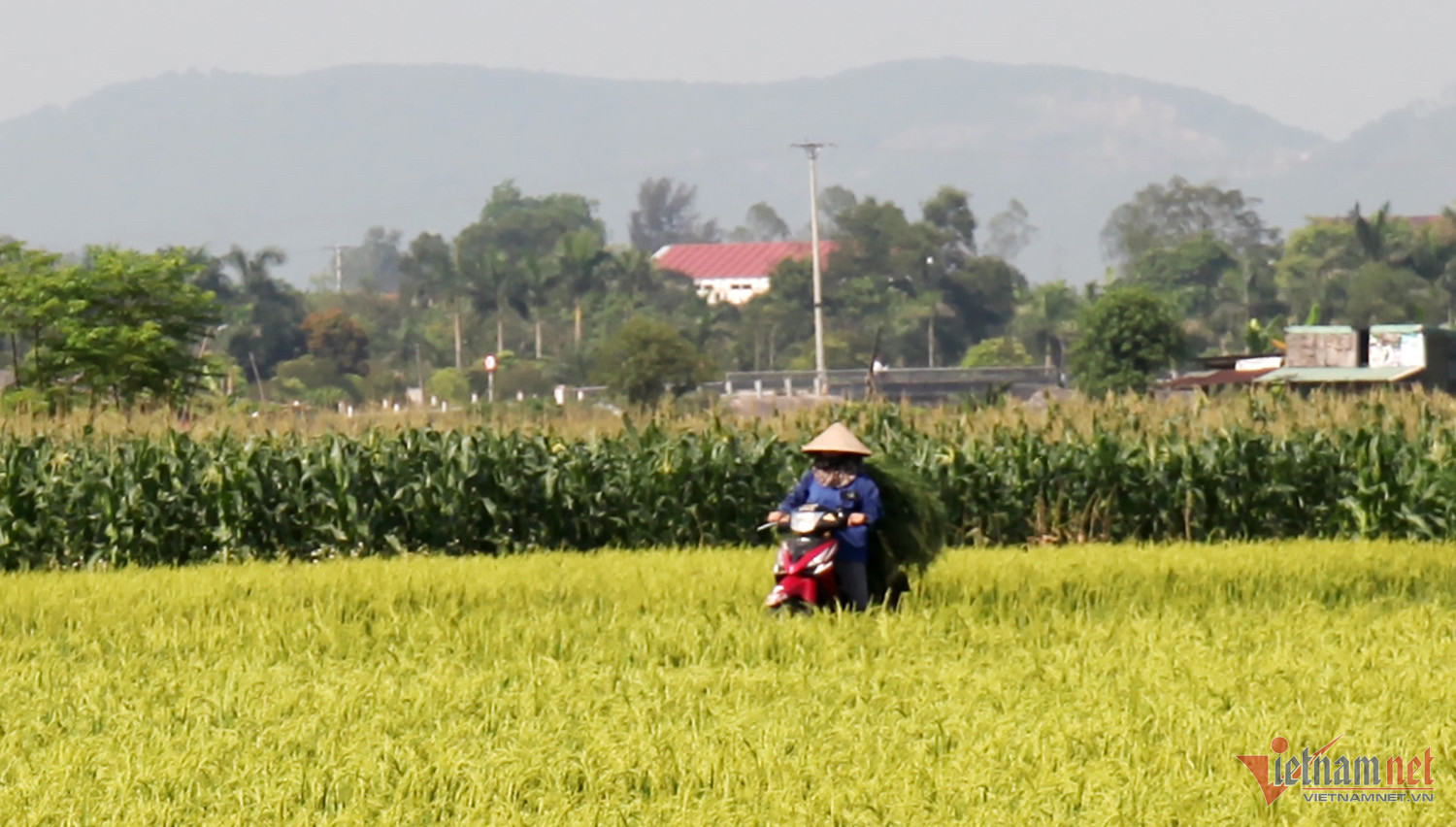 9h sáng cùng ngày, nhiệt độ ngoài trời tại Nghệ An lúc này đã lên đến 34 độ. Trên những cánh đồng ruộng tại huyện Nghi Lộc, bà con nông dân vội cắt cỏ, thu hoạch cây ngô về nuôi trâu, bò.