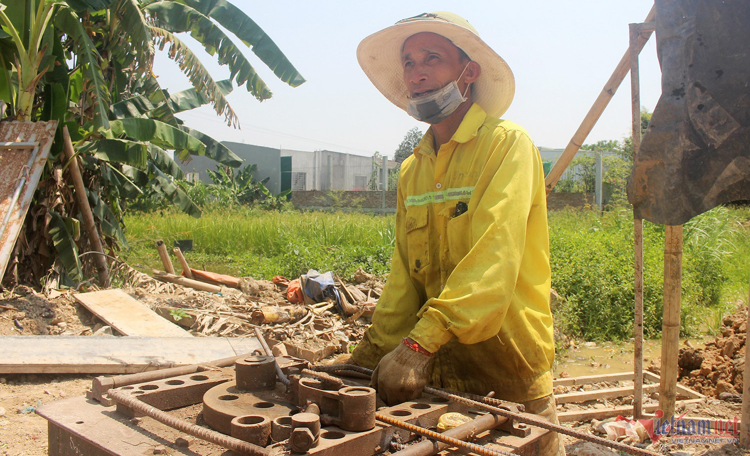 "Thời tiết rất nắng nóng cộng với nền nhiệt bê tông, cốt thép bốc hơi khi công nhân trèo cao hàn xì sẽ nhanh đuối sức. Thời gian làm việc của công nhân chỉ trong vòng 3 tiếng đồng hồ vào buổi sáng" - anh Toàn chỉ huy thi công chia sẻ.