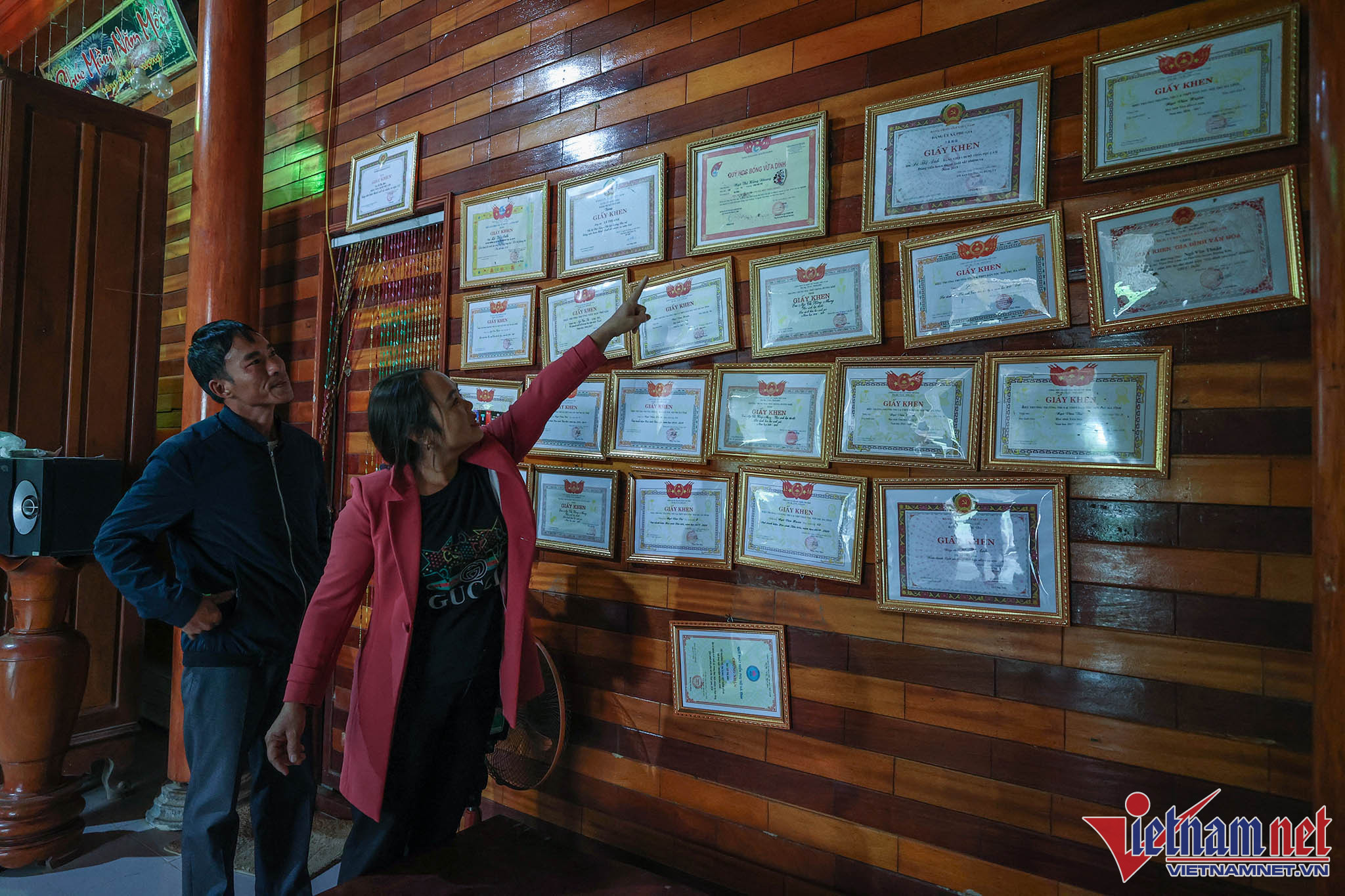Hầu hết những ngôi nhà ở thôn Phú Lâm đều được xây dựng bằng gỗ .Vợ chồng chị Lê Thị Anh là người gốc Lào (bên trái) đang trò chuyện người dân sống cùng thôn.Vợ chồng chị Lê Thị Anh đang giới thiệu hàng chục giấy khen thành tích học tập của 2 con.Nhà văn hóa thôn Phú Lâm.Một con đường thôn giống như mọi con đường trong thôn Phú Lâm.Phan Văn Sơn (32t) có bố người Việt, mẹ người Lào đang dựng ngôi nhà mới ở Phú Lâm cho biết cuộc sống người dân thôn đến nay khá tốt, nhiều thanh niên do được học hành nên đã đi làm, định cư ở các thành phố lớn. Nhà cửa của người dân khang trang hơn, đường xá sạch đẹp, đi lại thuận tiện hơn. Thiếu tá Phan Tuấn Hoàn, bộ đội biên phòng đồn Phú Gia thường thăm hỏi, giao lưu với bà con trong thôn. Anh Hoàn gặp gỡ trao đổi với phó bí thư thôn Phú Gia Lê Khắc Bằng.Cụ Nai Sinh năm nay 90 tuổi là người Lào sang sinh sống tại Phú Lâm từ thời trẻ.Phó Chủ tịch UBND xã Phú Gia chia sẻ chính quyền xã đã cung cấp, hỗ trợ kỹ thuật bà con thôn Phú Lâm nuôi lợn, bò... Hiện nay thu nhập bình quân của người Lào nơi đây 50 triệu đồng mỗi năm. Nâng cao chất lượng giáo dục cho mỗi học sinh tại địa phương.