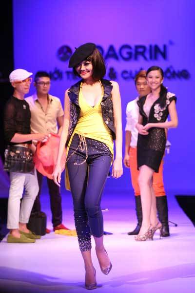 Hoạt cảnh trên nằm tiết mục giới thiệu bộ sưu tập thời trang ứng dụng, thích hợp với hoạt động dạo phố của phái đẹp. Những bộ cánh được nhà thiết kế dụng công biến tấu các chi tiết một cách đầy sáng tạo, với những chiếc áo có thể sử dụng làm váy hay ngược lại.