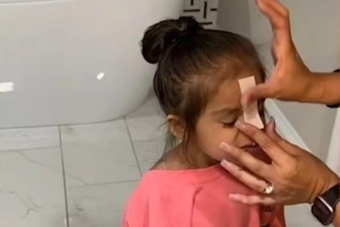 Người mẹ đăng clip triệt lông mày cho con gái 3 tuổi. |